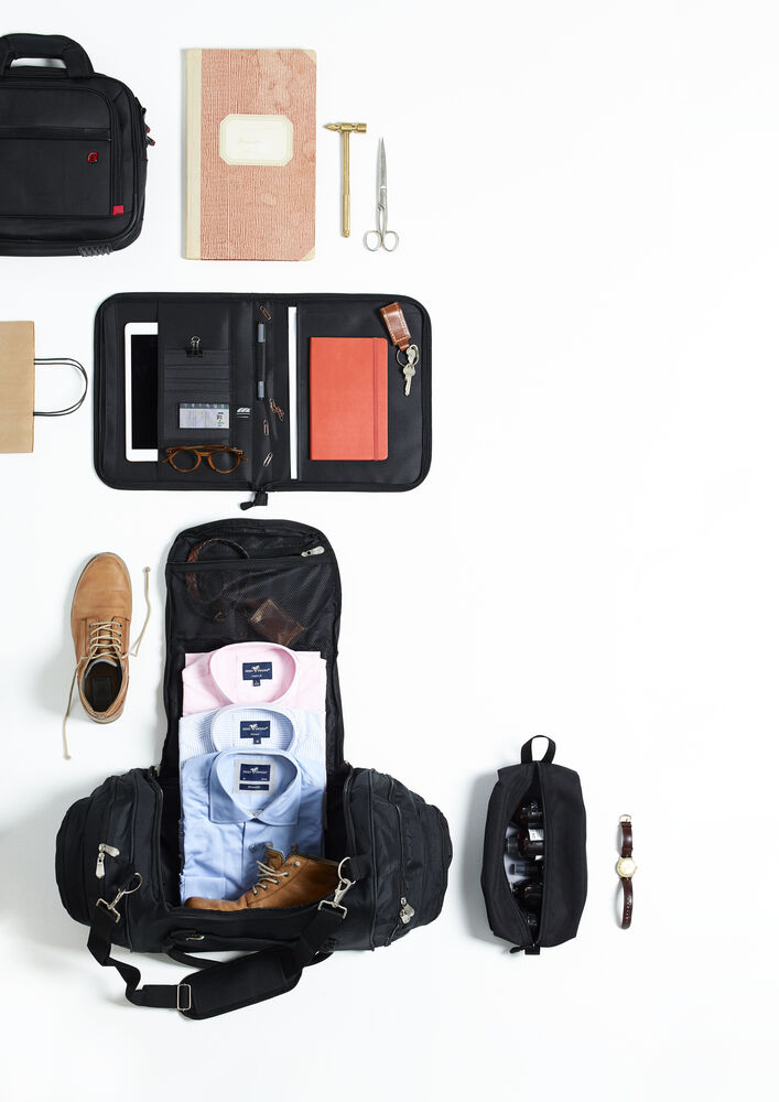 PC- veske med glidelåslommer på begge sider. Kan enkelt festes på trolley.