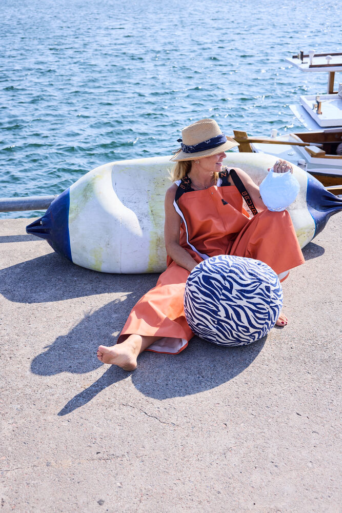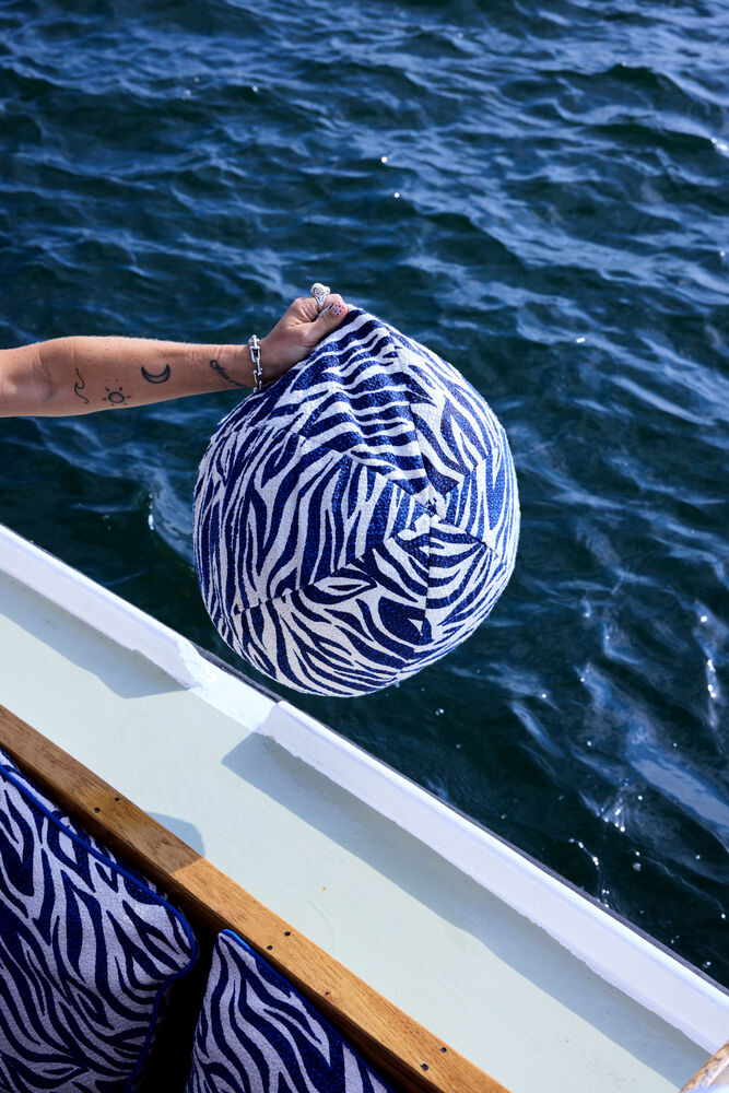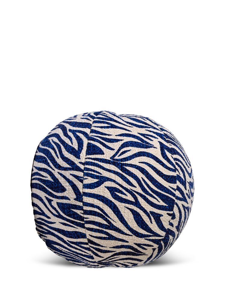 Luksuriøs og leken rund pute med sebramønster i fin bouclé-kvalitet. Takket være den runde formen er den perfekt å «slenge rundt» i favorittkroken din. Den teksturerte overflaten løfter helhetsfølelsen i sofaen, og med sertifisert bomull blir den et naturlig blikkfang uansett hvor den plasseres. Diameter: 35 cm. Innerpute inkludert. Finnes i svart og blått. Kun håndvask. Designet av Byon Studio.