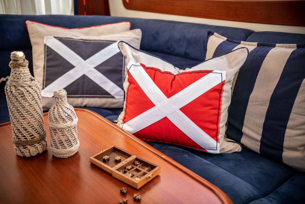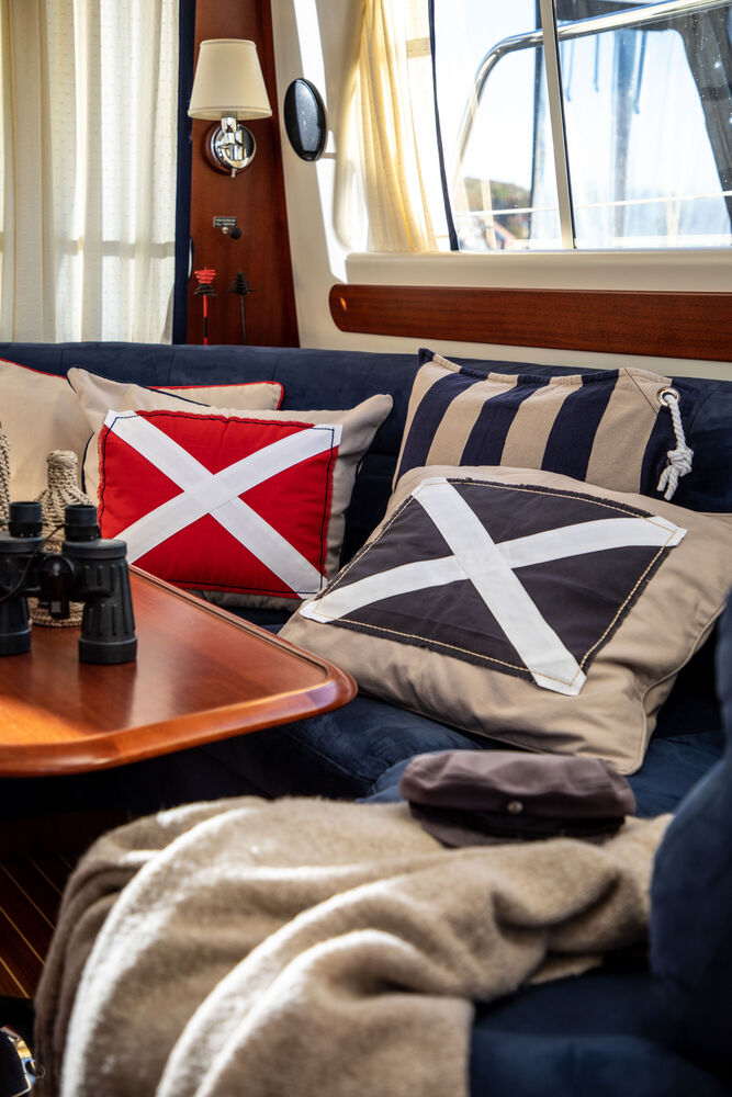 Putetrekk fra Lord Nelson Victory kjennetegnes av klassiske maritime mønstre og farger med kvalitet og høy standard. Inspirert av britisk maritim historie.