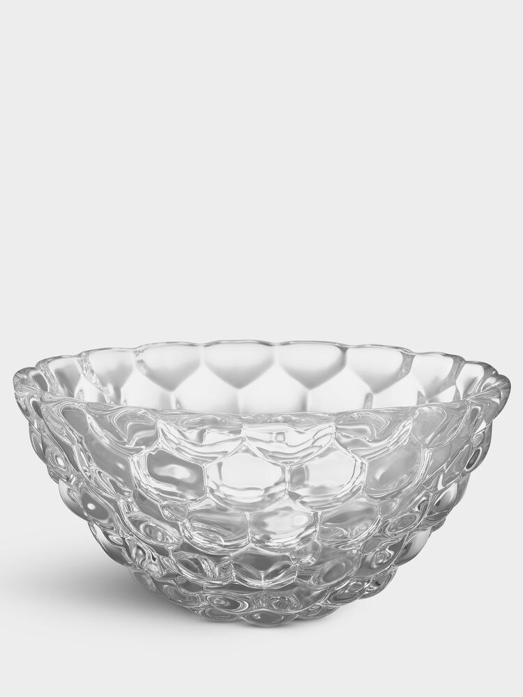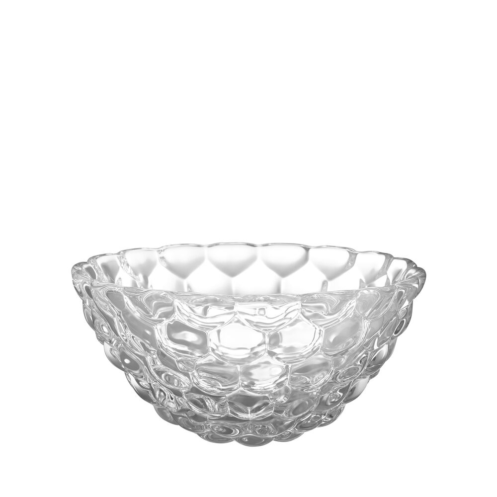 Skålen i Raspberry-serien har et design som ligner et bringebær med sitt mønster av runde kuler. Den større bollen fra Orrefors egner seg utmerket til tilbehør som salater. Designet av Anne Nilsson.