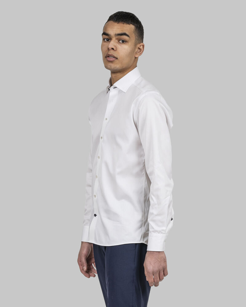 - 100% Langfibret bomull. Non Iron. Tapede hovedsømmer.