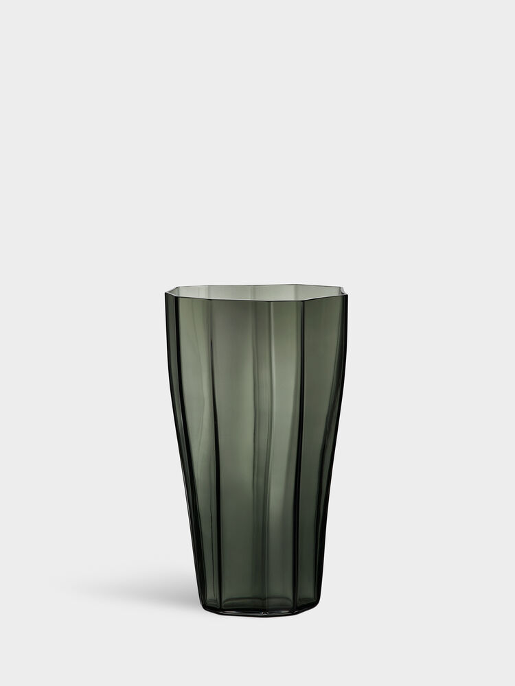 Med Reed viser Monica Förster hvordan man skaper en sterk karakter ved å fremheve folder i stedet for å prøve å skjule dem. Overført til glass gir det en følelse av forsiktig bevegelse i det harde glasset. Vasen er blåst i klart glass eller grønt. Den mellomstore Reed-vasen passer veldig bra til snittblomster.
