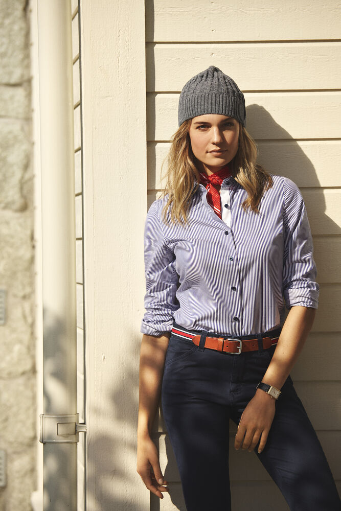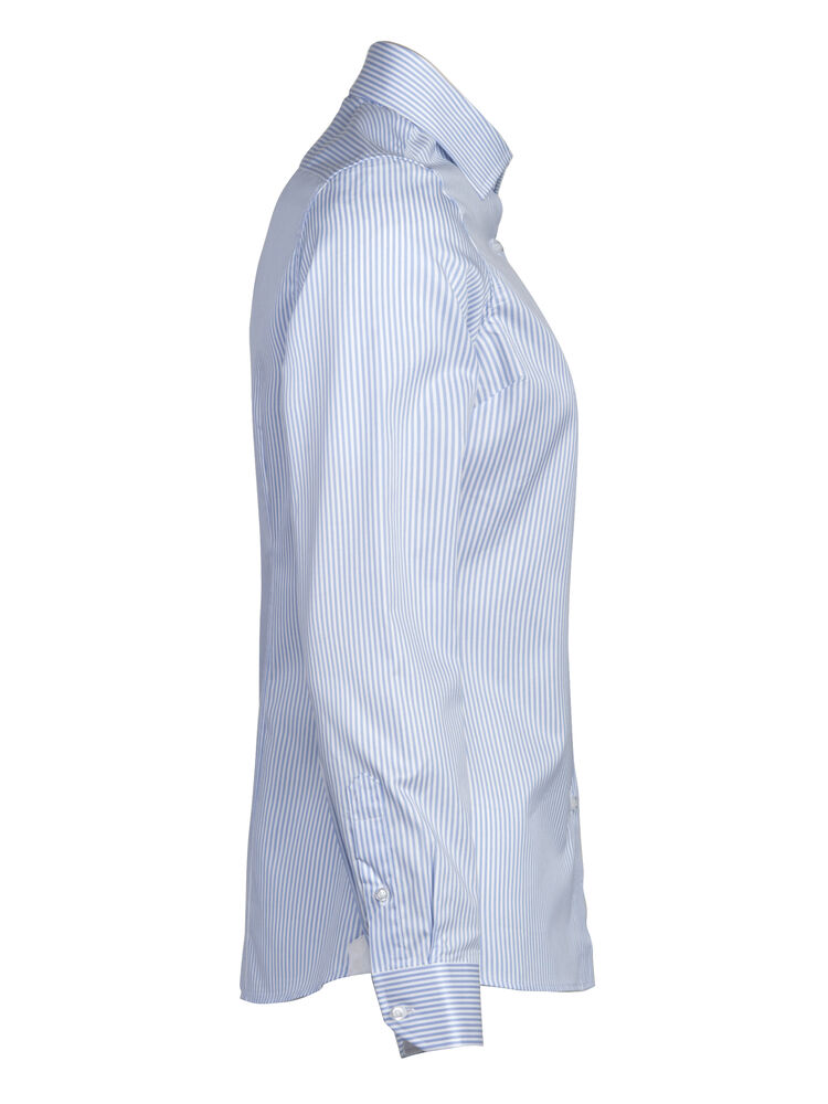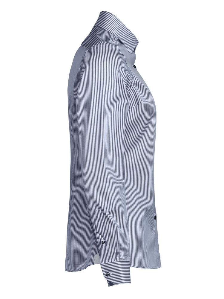 Kvalitetsskjorte i kjemmet bomull. Easy care behandlet og forsterkede sømmer i krage samt i mansjett. Stripete skjorte med kontrast under krage, knepping og i ermene. Moderne passform.