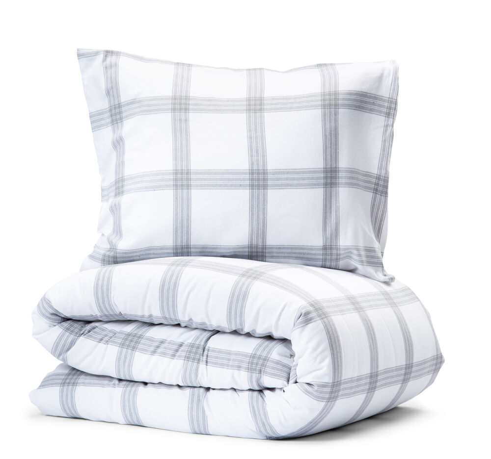 Stilig og tidløst sengesett med nøkternt rutemønster i jordnære farger på hvit bakgrunn. Vevd av 70 prosent resirkulert bomull, slik at du og dine kjære kan sove med god samvittighet.