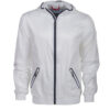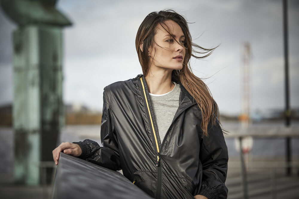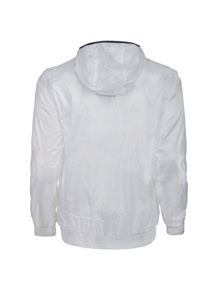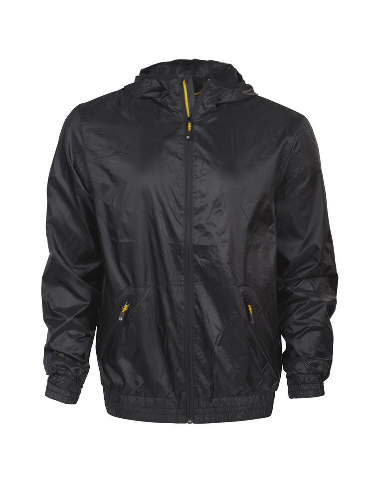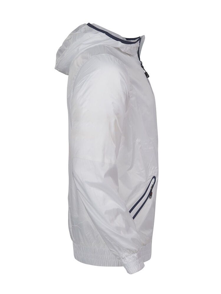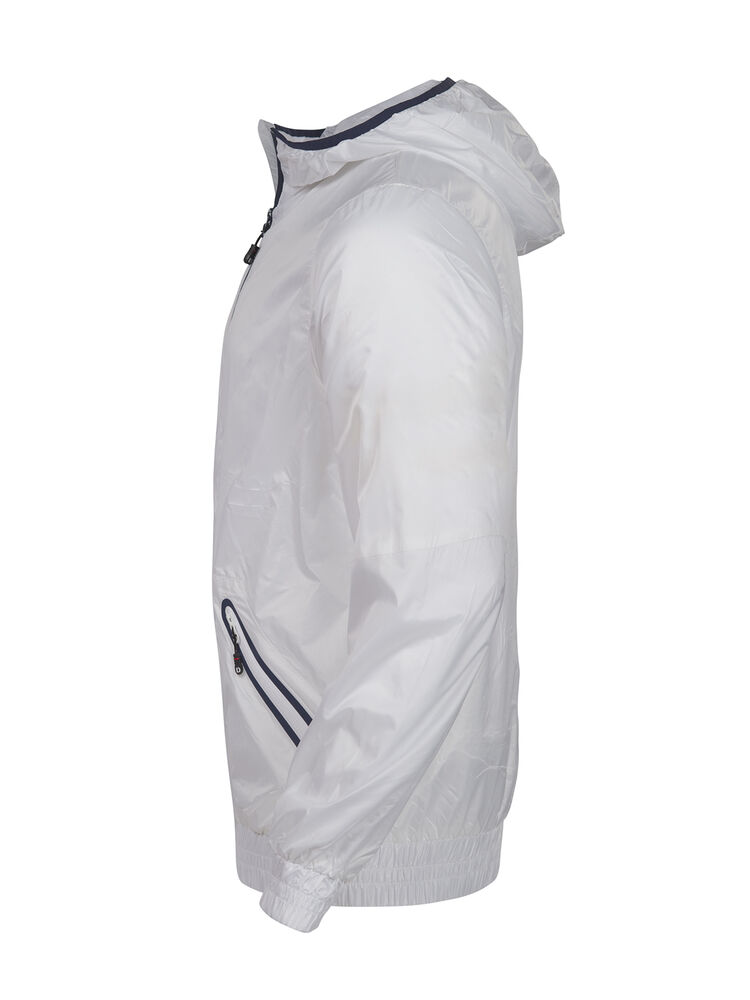 Ultralett vindjakke i micro-ripstop og med meshfõr. Hette som sitter fast og forbøyde ermer for bedre passform. Sidelommer med glidelås og dekortransfer. Mansjett i nederkant og ermer. Lett og smidig å pakke sammen.