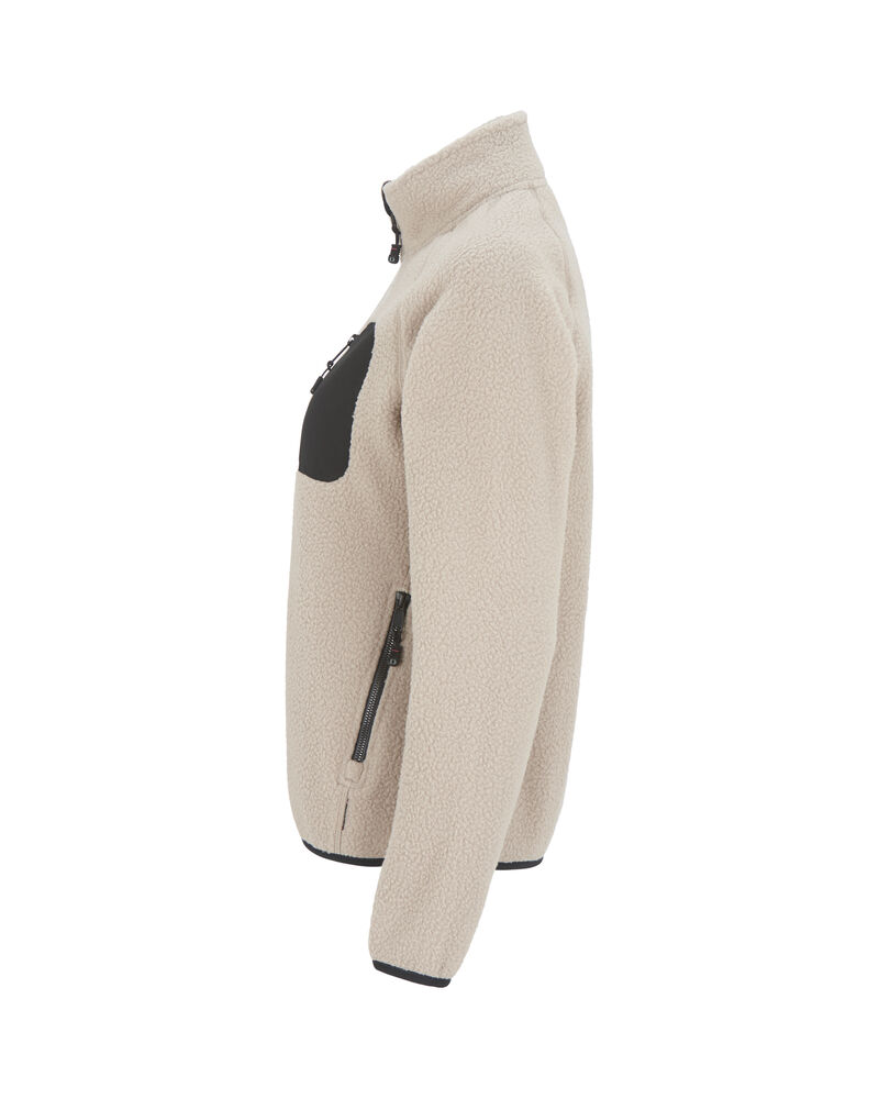 Fleecegenser i Pile fleece, et materiale som gir en fyldig følelse. Produsert av sertifisert resirkulert polyester. Dekorativ brystlomme med glidelås. Hel glidelås som går opp i kragen, samt frontlommer med dekorative synlige YKK-glidelåser. Dobbelkrage med formtilpasset design. Forskjøvet side- og ermesømmer sørger for god passform. Dekorative flatlock-sømmer og strikk i nederkant og på ermeavslutningene, alt i samme fargetone.