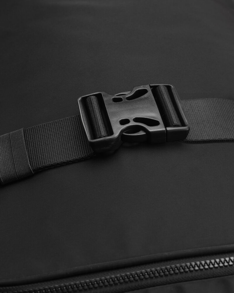 Bag med teleskophåndtak i aluminium og U-formet åpning med glidelås. Håndtak på både kort- og langsiden. Sidelomme på utsiden og stort hovedrom med spennebånd inni. Detaljer i metall.
