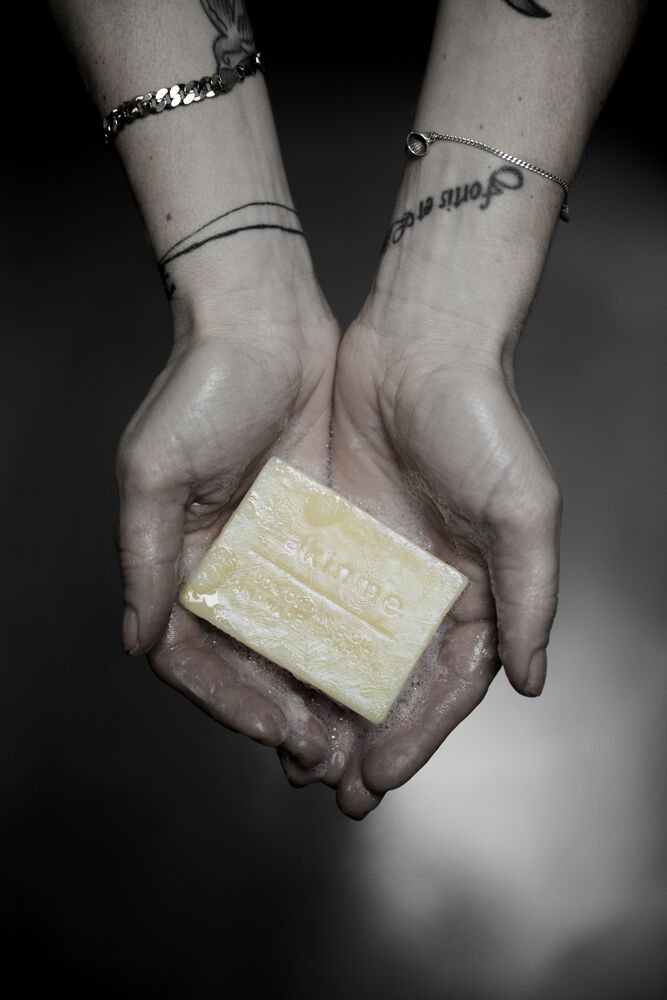 Mild, rensende og fuktighetsgivende såpe basert på sertifiserte organiske råvarer. Parabenfri, silikonfri, PEG-fri. Ingen syntetiske tilsetningsstoffer. Inneholder kokosnøttolje, palmeolje (i liten skala dyrket sertifisert palmeolje), solsikkeolje, lakserolje og rapsolje for fuktighetsgivende og nærende egenskaper. De vegetabilske oljene er beroligende og vil bidra til å beskytte og gi næring til huden din.