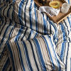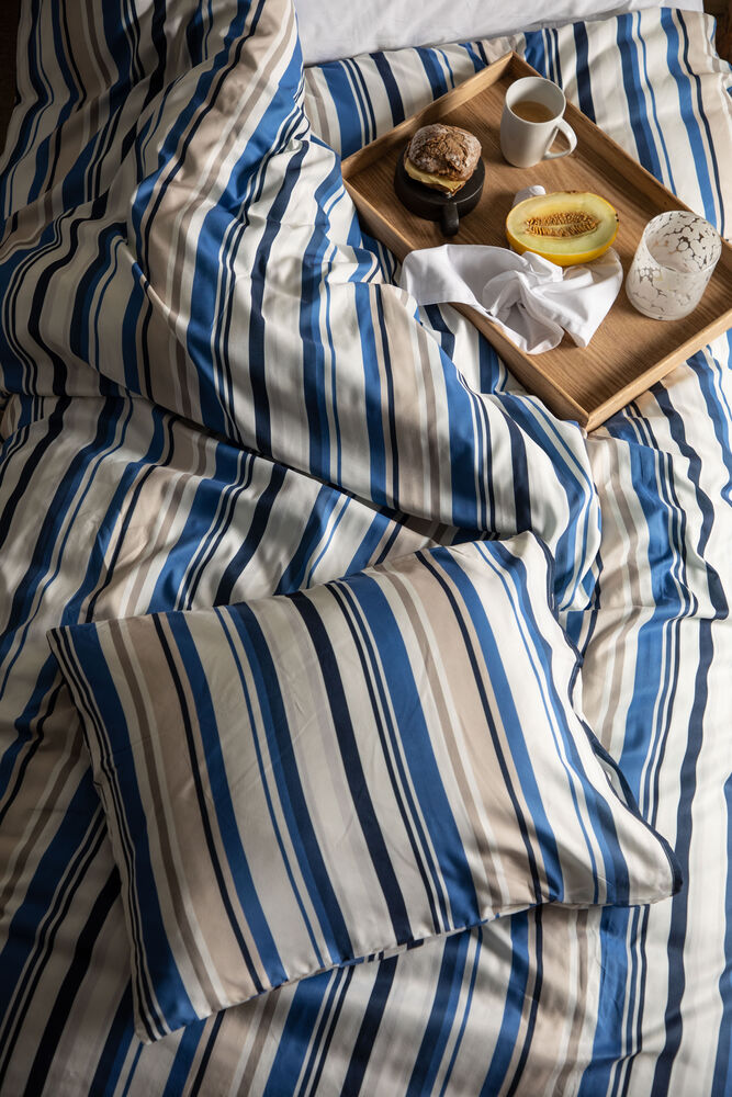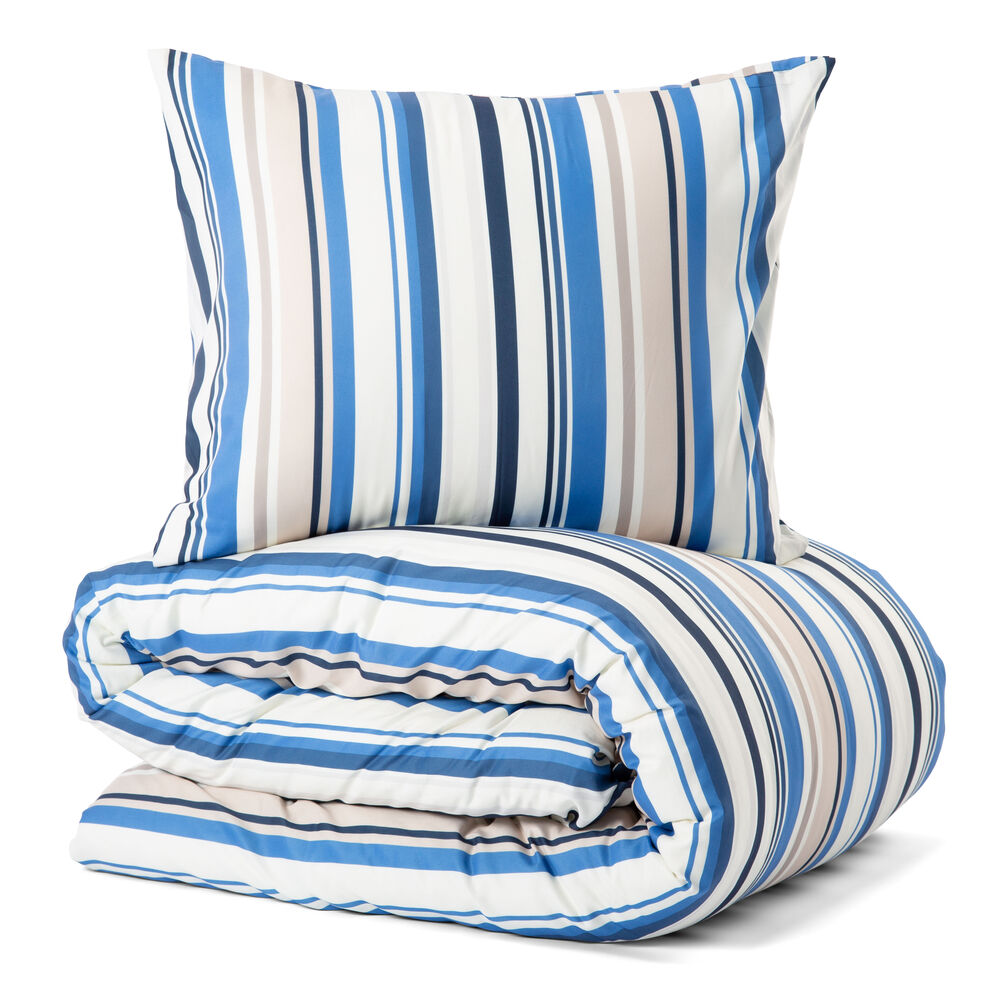 Sengesettet Berga av mikrofiber fra Lord Nelson Victory, har brede og smale striper i en harmonisk kombinasjon. Settet er laget av polyester/mikrofiber med den positive egenskapen at det tørker raskt og veier lite. Mikrofibersengetøy har blitt populært for bruk i både båter og campingvogner fordi de er enkle å pakke med seg og fungerer godt i fuktige omgivelser.