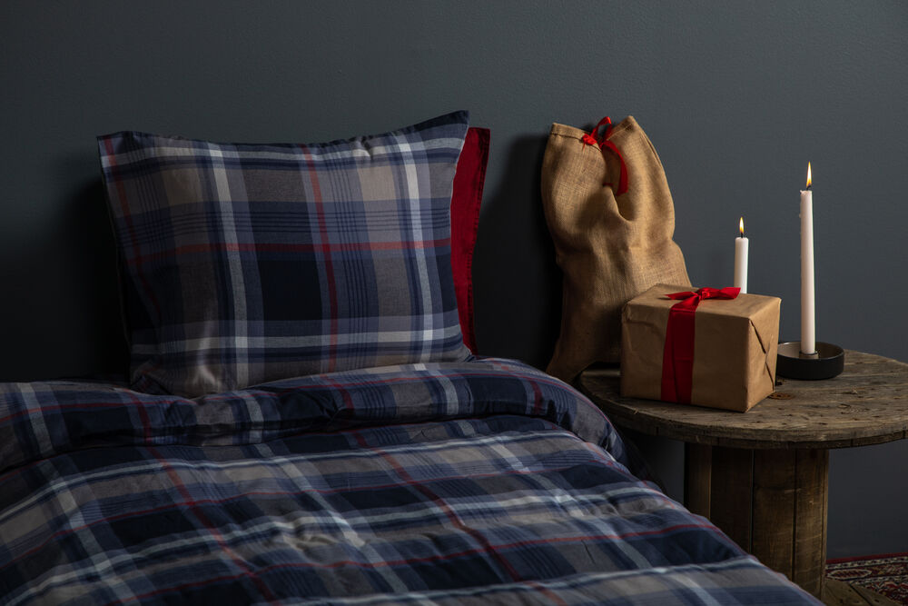 Sett et personlig preg med dette garnfargede rutete sengesettet. Det ekstra myke garnfargede stoffet skaper en herlig følelse mot huden og holder deg varm om natten.