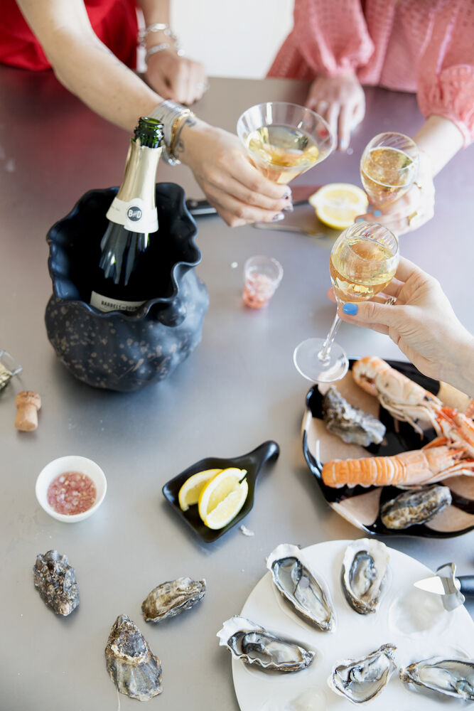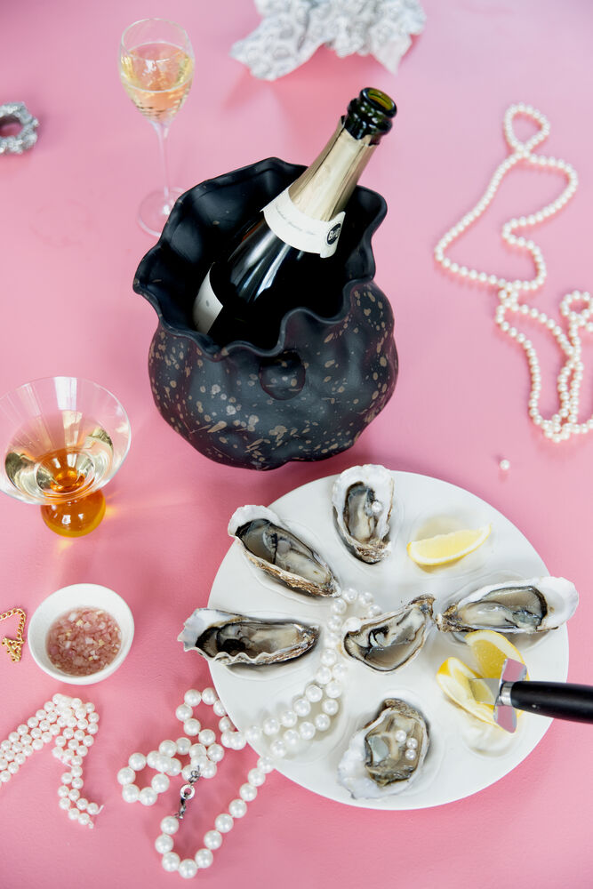 Under overflaten skjuler det seg en verden av uforutsigbare former og vakre materialer. Vi spiser av skjell, tar imot grove overflater og bytter ut glitter med saltsprut. Havet flytter inn når vi pynter og dekker på, rett og slett fordi vi ikke kan motstå lekenheten. Serveringsfatet Oyster er et resultat av når havets dyp gjør avtrykk i vår skapelse.