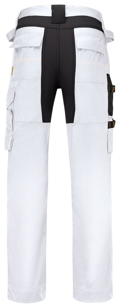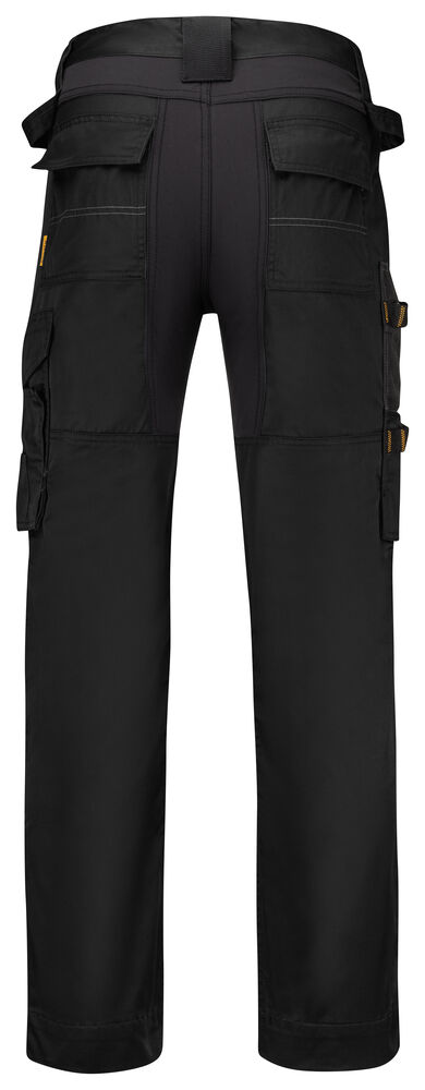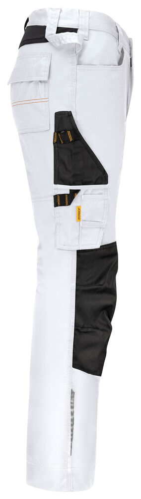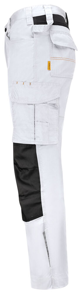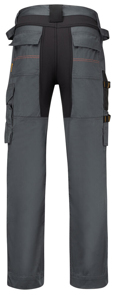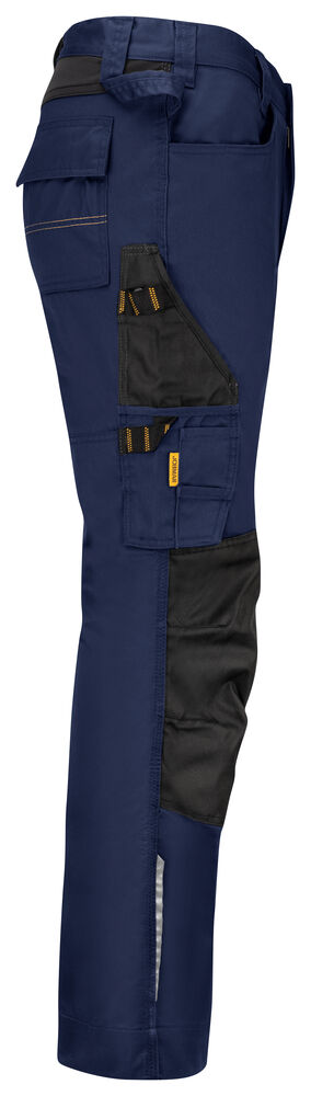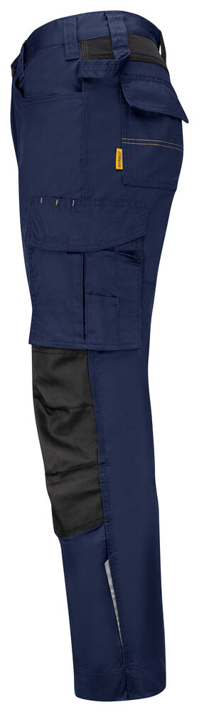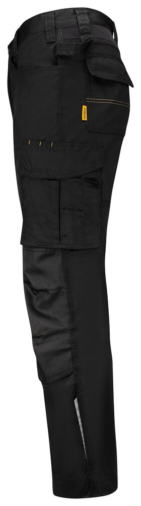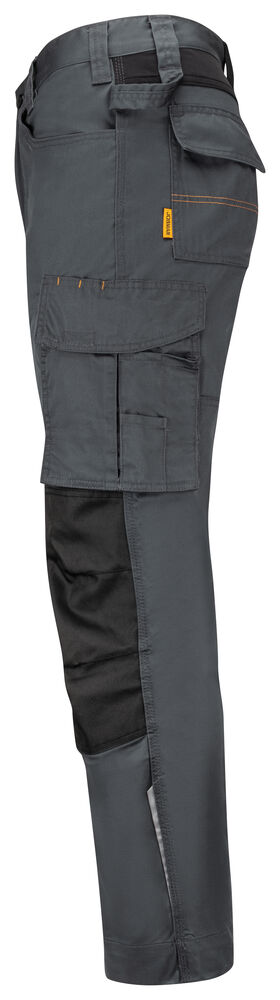 Lettstelt polyester/bomull som holder på fargen og formen. Stretchpaneler på baksiden, for økt bevegelsesfrihet. Romslige frontlommer. Baklommer med klaff. Benlomme med ekstra rom og klaff med borrelås. Tommestokklomme med knivholder. Forsterkning på knebeskyttelseslommer og med to høyder for knebeskytterne. Buksebenet kan forlenges 5 cm ved at kanten på bena brettes ned.