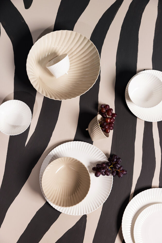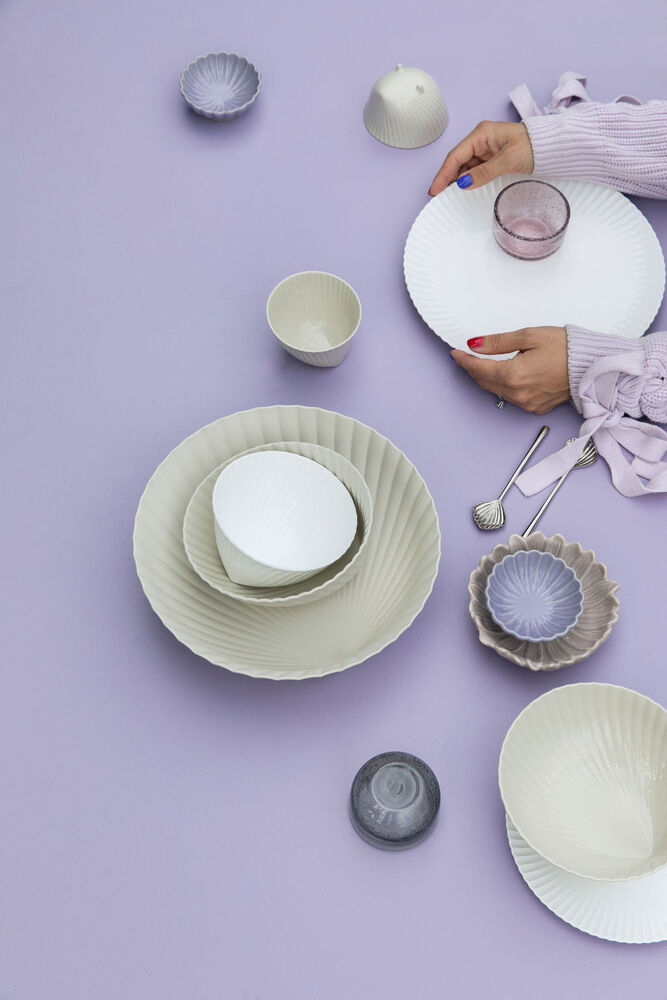 Skålen Frances er en moderne og klassisk porselensskål. Inspirasjonen kommer fra skjellenes vakre former, farger og materialer. Skålen står på små føtter og finnes i en lys beige tone og hvit.