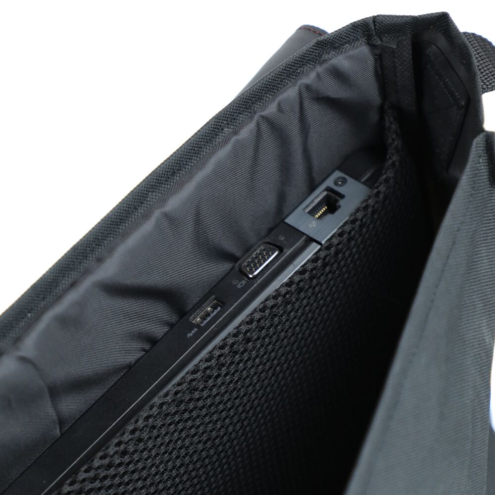 PC-veske med justerbar skulderreim. Lomme med glidelås i front.