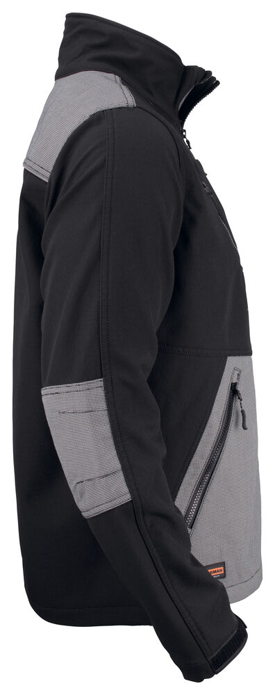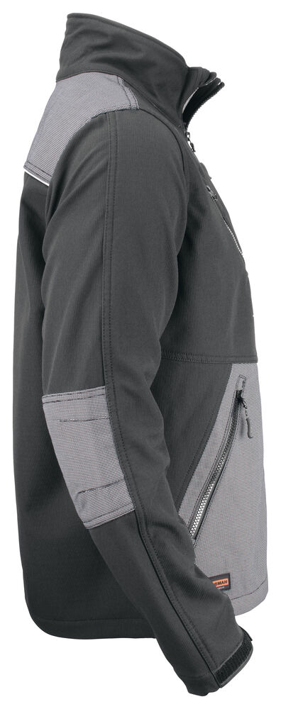 3-lags jakke i micro ripstop softshell med membran og fleeceinnside som sammen gir god pusteevne. Forsterkning i Cordura® i skulderpariet, albuene og frontlommene. Romslige frontlommer med glidelås og brystlomme med ID-kortholder. Innerlommer. Regulerbar i midjen og på mansjettere. Glidelås med refleks foran. Refleks på baksiden av skuldrene.