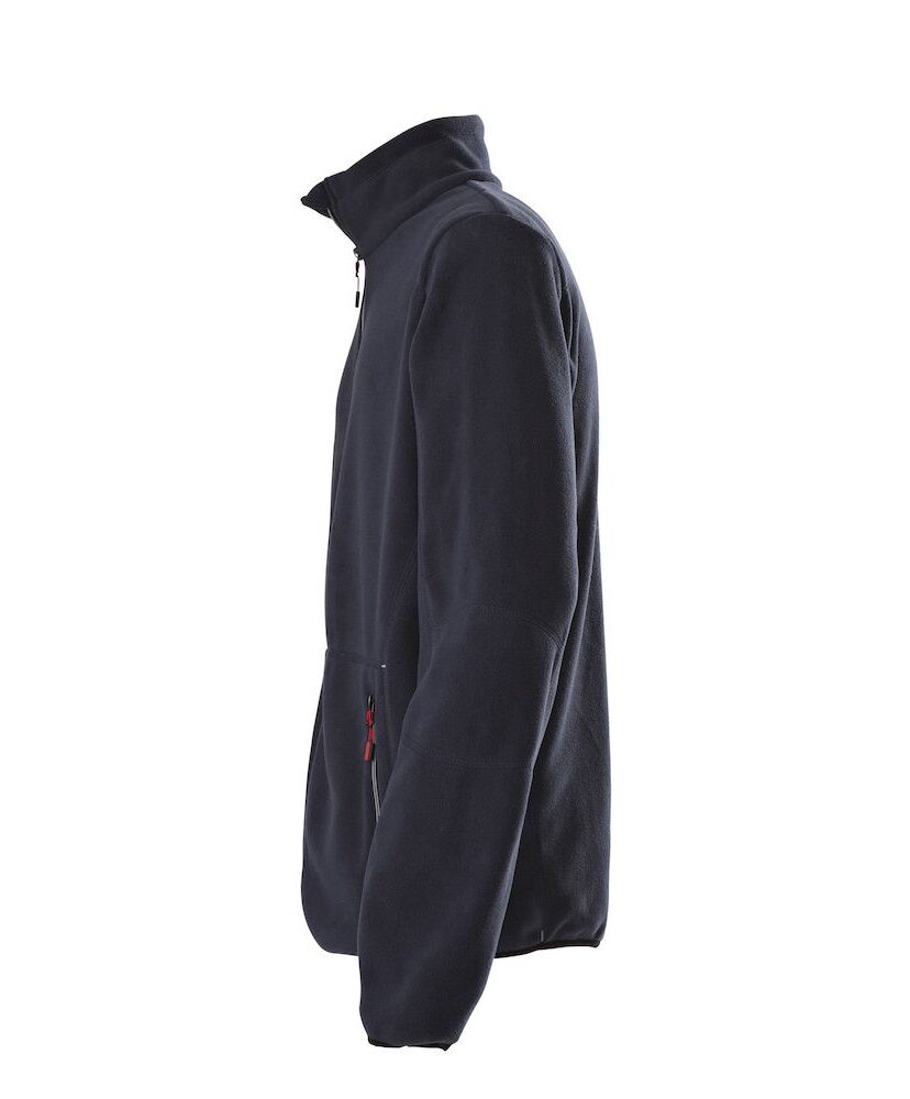 Fleecejakke med tofarget glidelås i front og i lommer. Dekorert med flatlockksømmer. Mulighet for å kjøpe separate zip-pullere i ulike farger til glidelåsen for å matche eventuelle logoer.