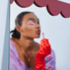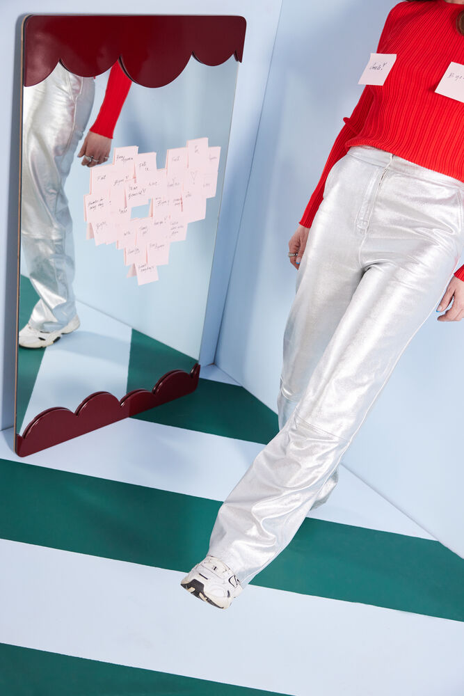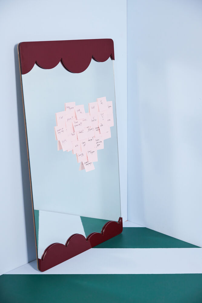 De myke, avrundede formene er tegnet for hånd og skaper lekne halvsirkler som får oss til å tenke på luftige skyer. Rammen har et annet design, hvor den ikke sitter på klassisk vis med fire sider, men kun på to av sidene. Rammen er spraylakkert mdf og har to ulike oppheng (horisontalt og vertikalt) for å kunne variere måten å plassere den på. Et speil vi absolutt ønsker å se i mange hjem. Tilgjengelig i beige og burgunder. Størrelse 70×100 cm. Design Byon Studio.