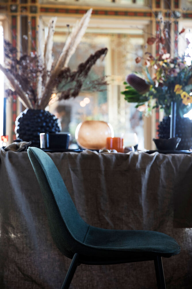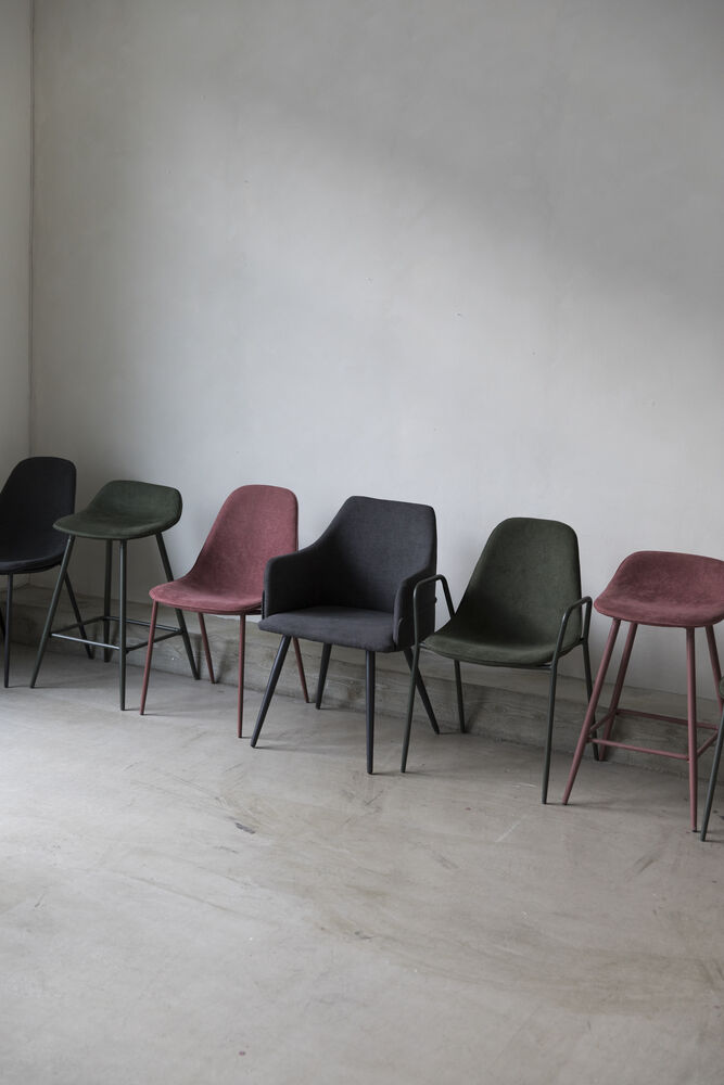 Cleo spisestuestol kombinerer det moderne og klassiske utseendet på en stilig måte. Seteoverflaten er fylt med skumgummi, treet er kryssfiner og de matchende bena er i pulverlakkert metall. Stolen er trukket i mykt polyesterstoff som har en vakker struktur. Cleo spisestuestol er tilgjengelig i sort, grønn og rosa.