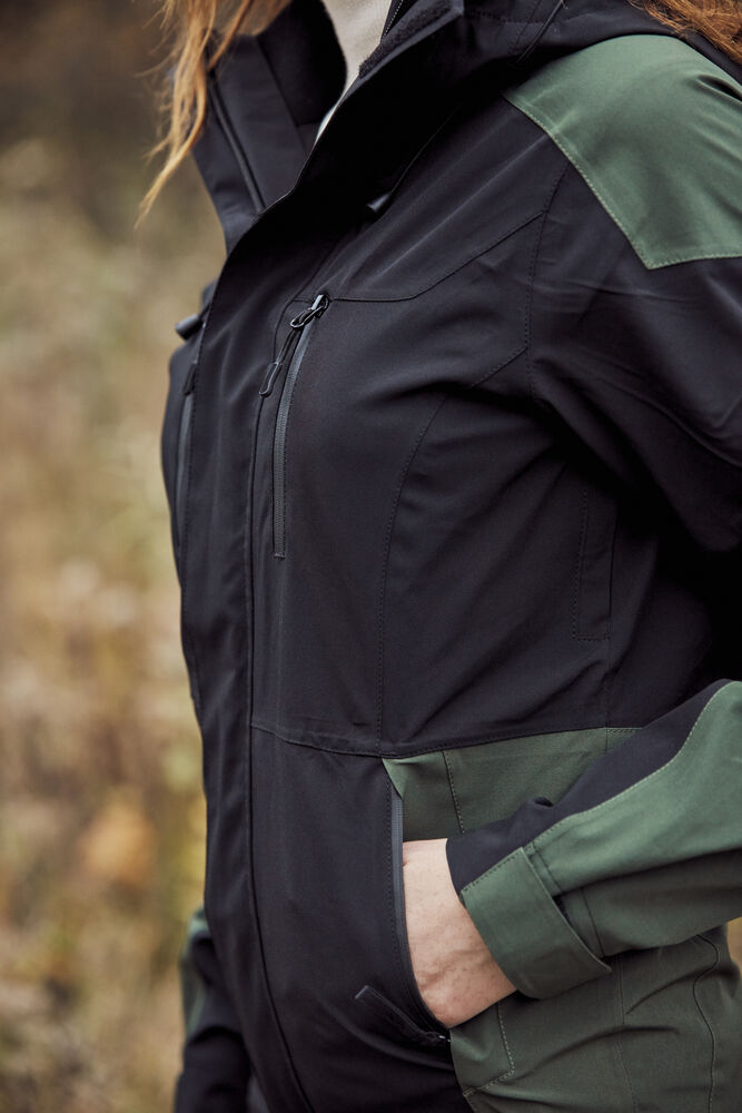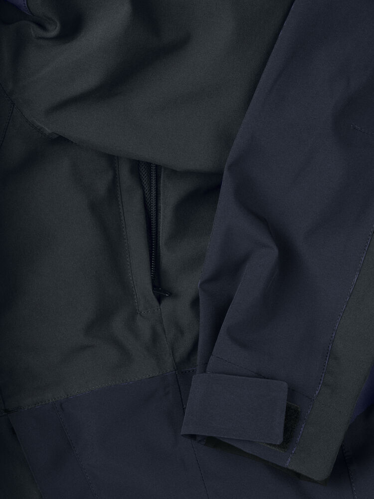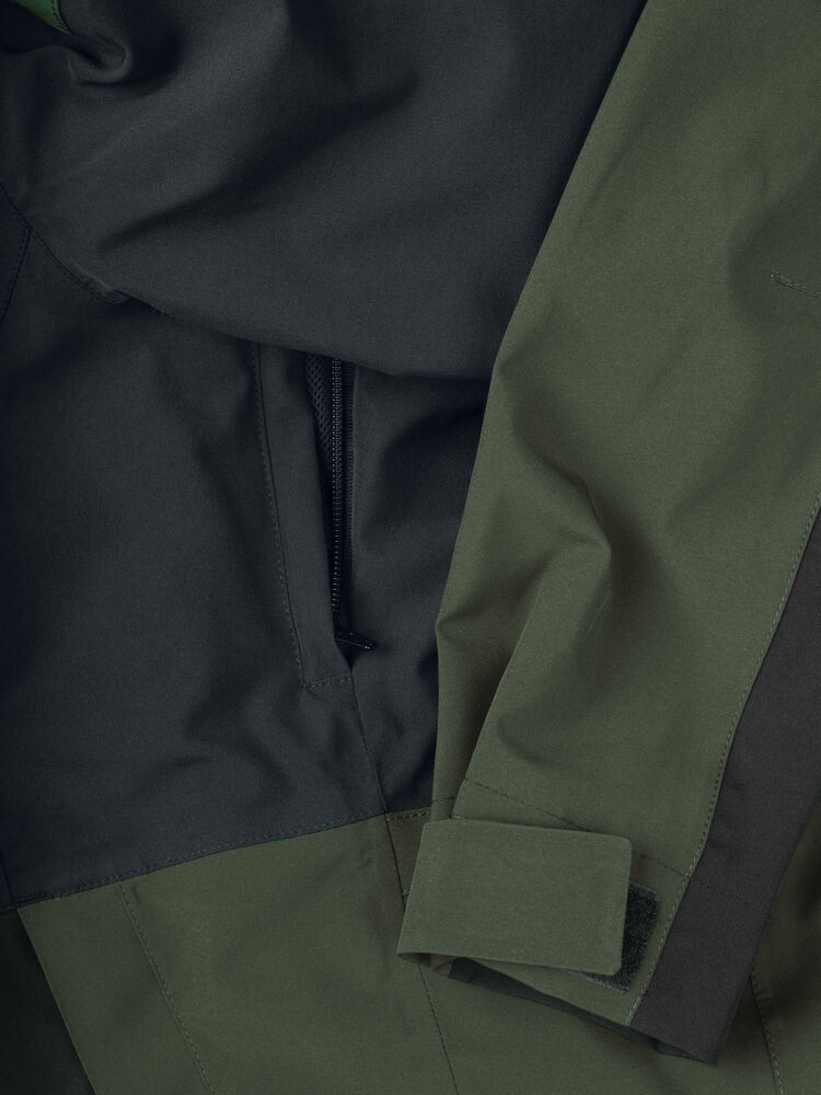 Unisex trekking jakke i en moderne passform med fine detaljer. SBS vanntette glidelåser på brystlommene og på lommene i siden. En innerlomme med glidelås, tapede sømmer og meshfôr. Snøring i ryggen for bedre passform og smidighet. Utstyrt med glidelås under ermet for enkel utlufting.