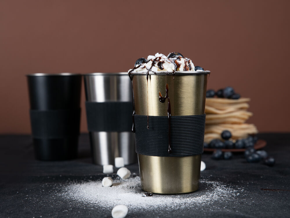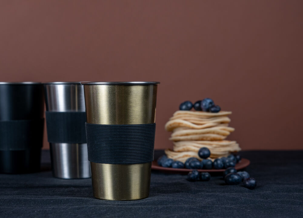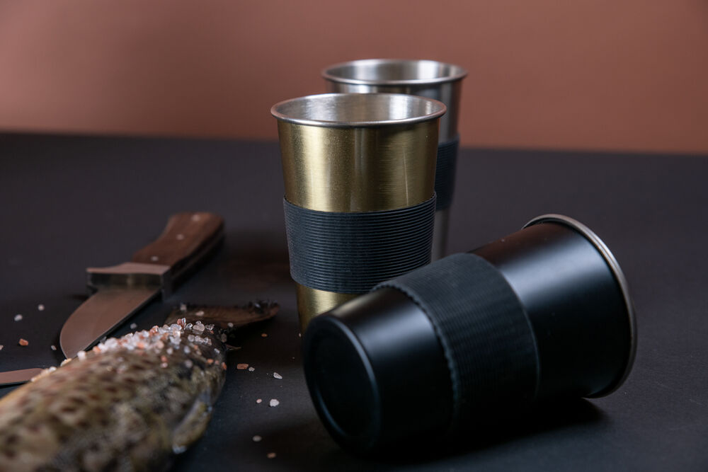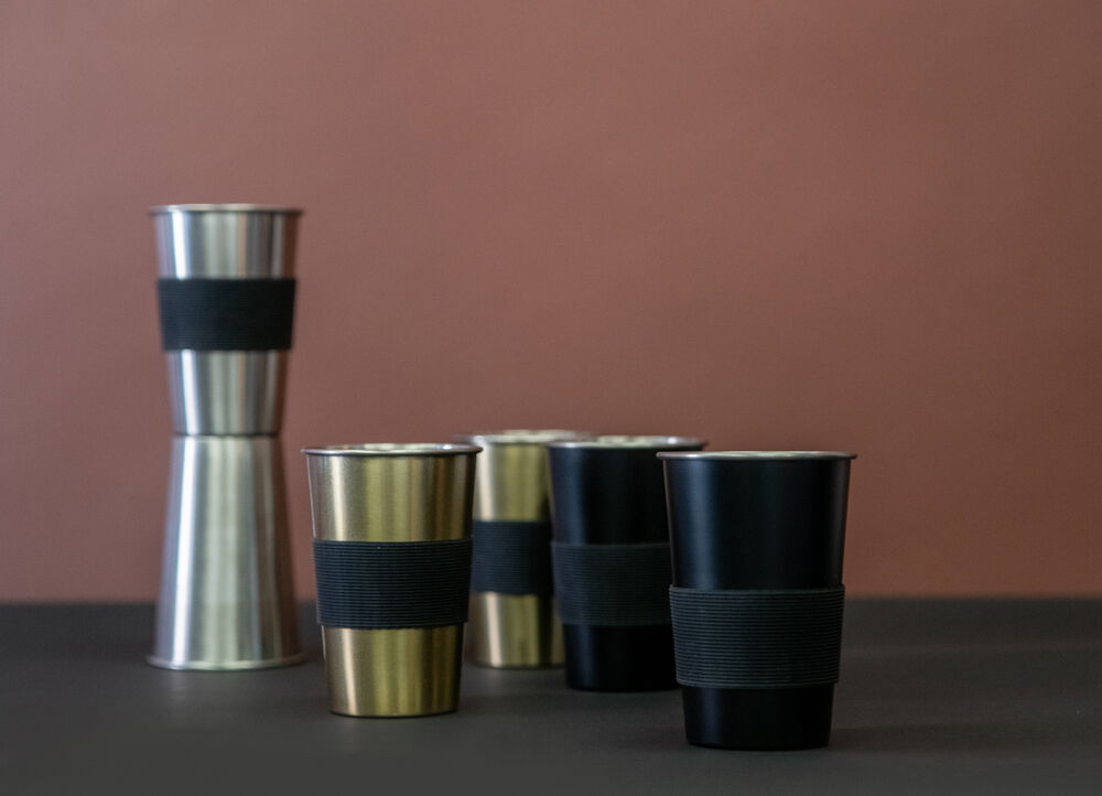 Praktisk og stablebart stålkrus perfekt til uteliv og utflukter. Avtagbar silikonreim for bedre grep og varmebeskyttelse.
