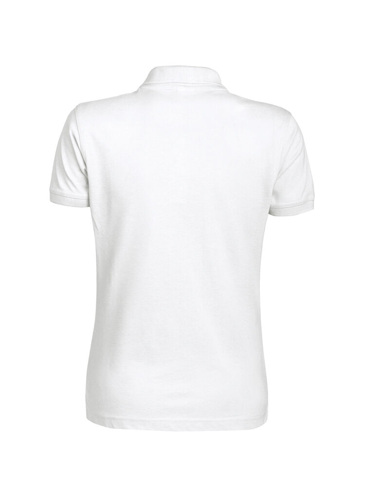 Damepique med tre knapper i stolpe, nakkebånd, splitt i siden, og ribb i ermavslutning.