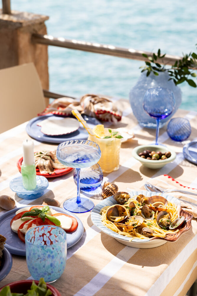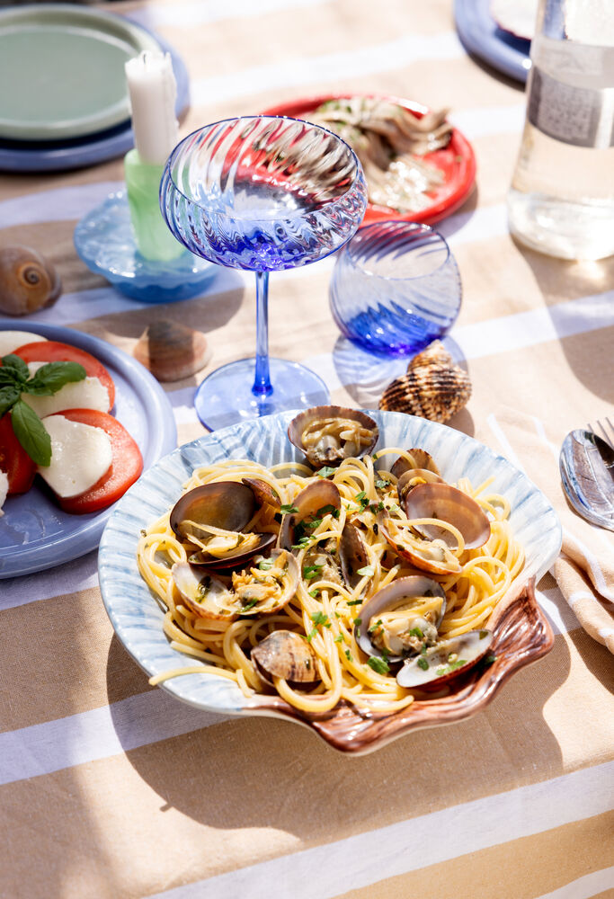 Armona er et eksklusivt håndlaget og håndmalt steintøyfat i en magisk lyseblå farge, skapt i samarbeid med MB Ceramics i Portugal. Inspirert av havets skatter er hvert fat unikt, perfekt både til servering og som en vakker interiørdetalj. Siden fatet er håndlaget, kan størrelse, form og farge variere. Designet av Matias Belo x Byon Studio. Tilgjengelig i to størrelser.