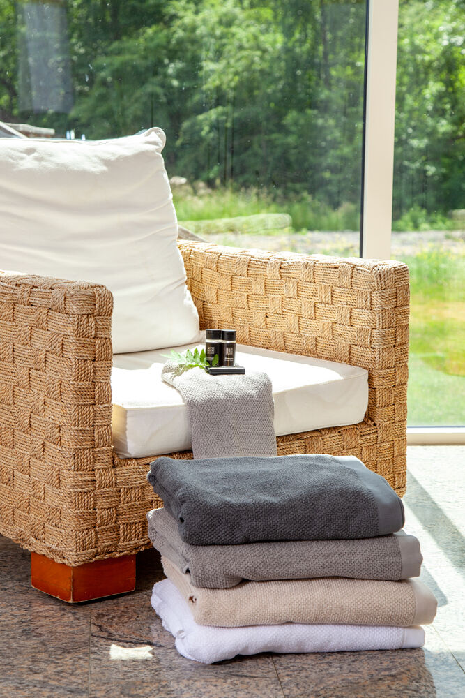 Et fantastisk frottésett i nytt og moderne design. Håndklærne er strukturvevd på begge sider, og er laget av en blanding av bomull og lin som gir god absorberingsevne. Moderne håndklær med en nett, pen kant. Økotex-sertifisert.