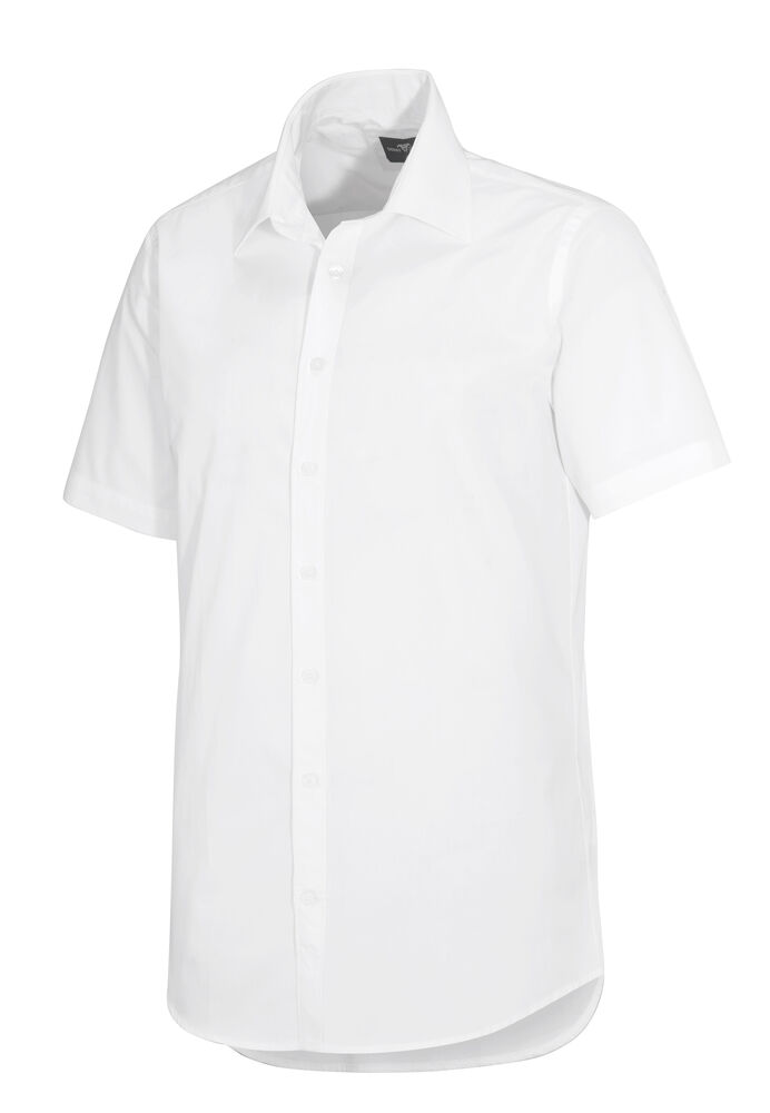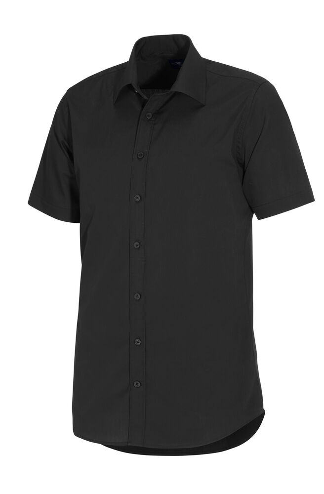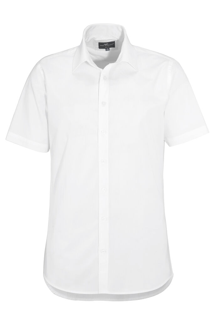 Poplinskjorte med korte ermer, ton-i-ton knapper og turndown krage.