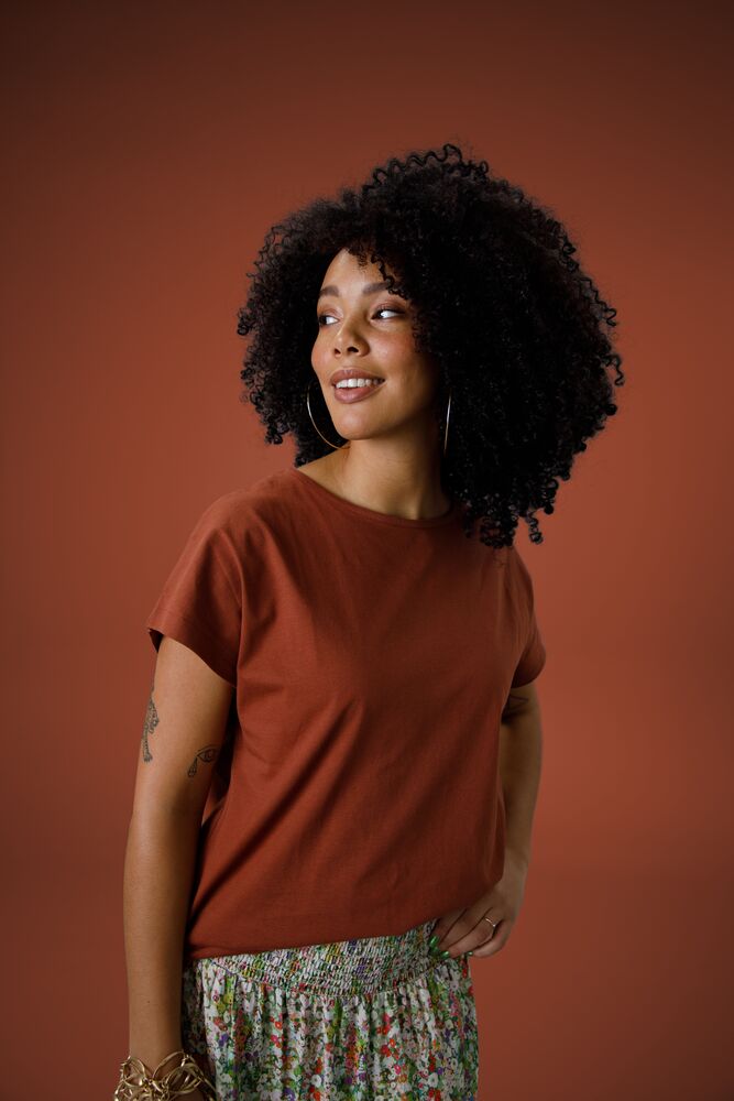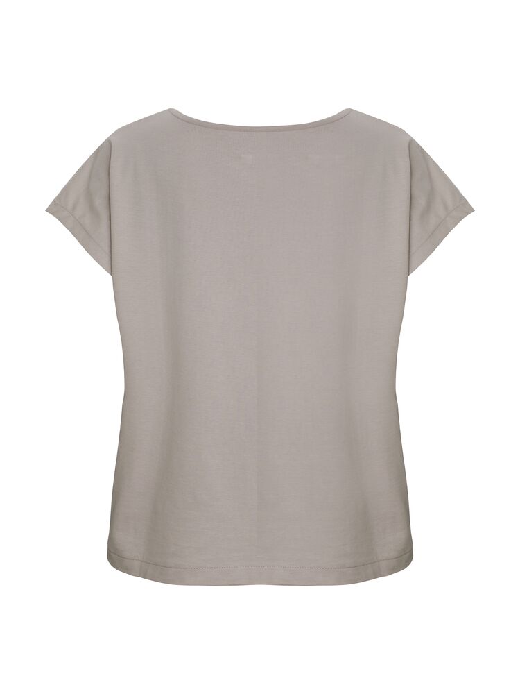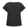 Feminin topp i en sjenerøs modell med fint fall. Dekorativ båthalsringning med kantbånd. Trykt etikett i nakken.