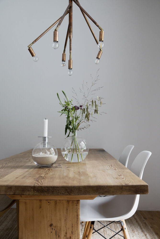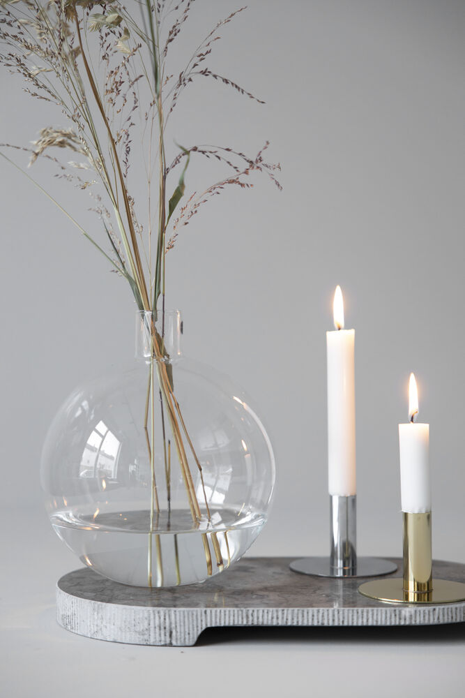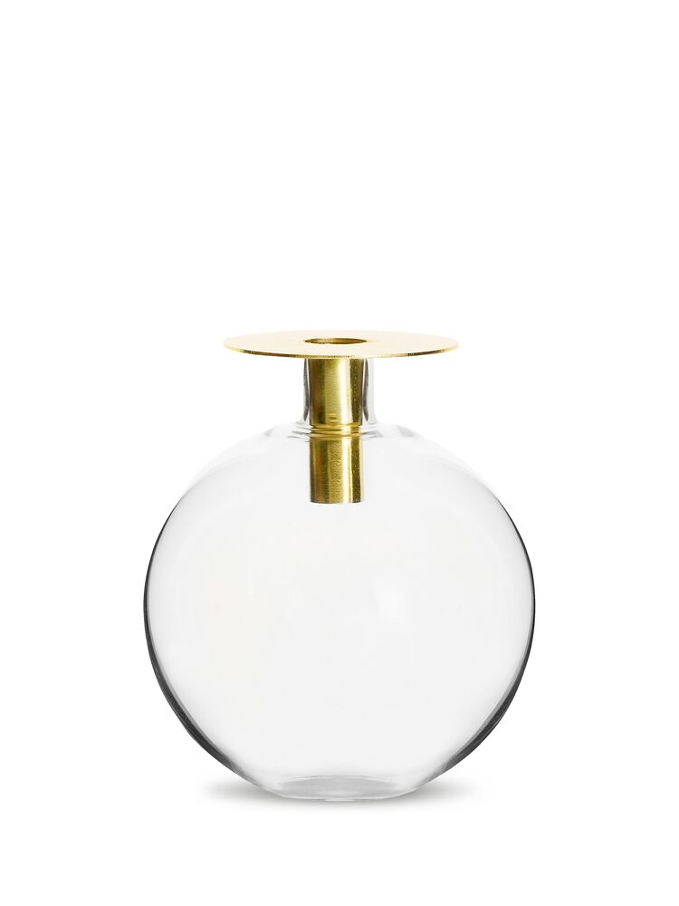 Top vase er laget av munnblåst glass og metall. En enkel, men dekorativ interiørdetalj som fungerer både som vase og lysestake. Metalldelen er avtagbar.