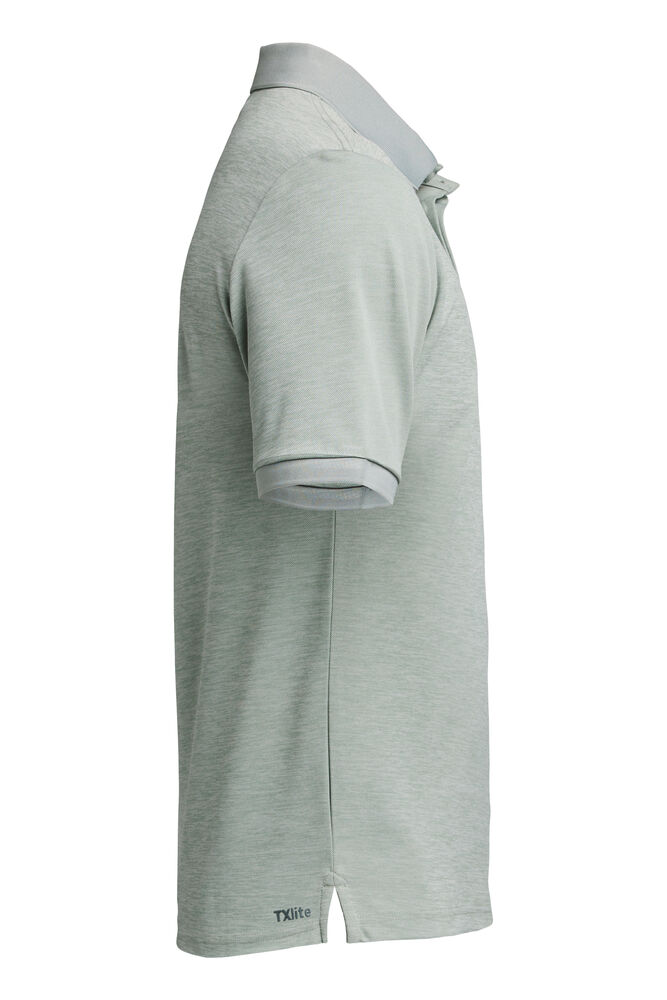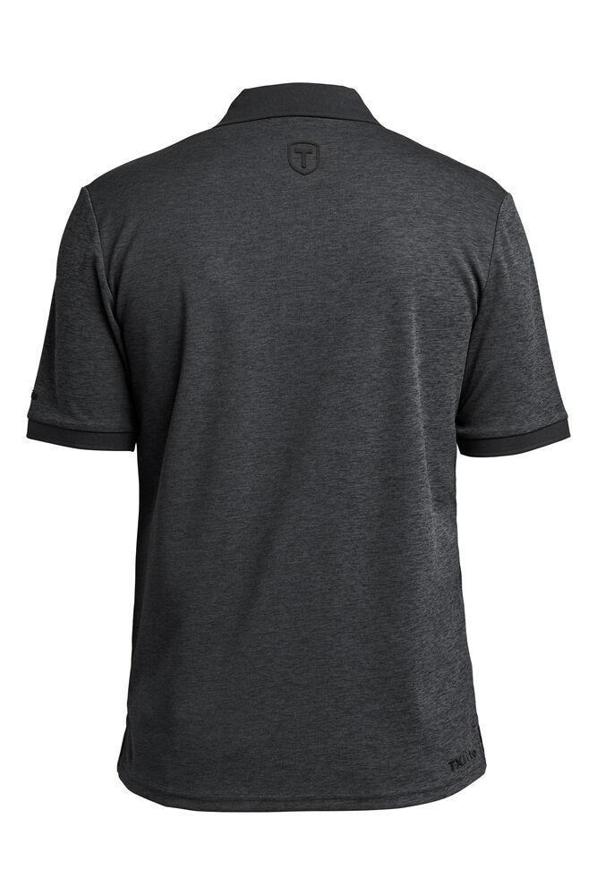 TXlite Melange Polo er en stilig, hurtigtørkende polo for menn med klassisk krage og tre knapper, laget av 100 % resirkulert polyester. Den har en diskret Tenson-logo på brystet og sidespalter for økt bevegelighet.