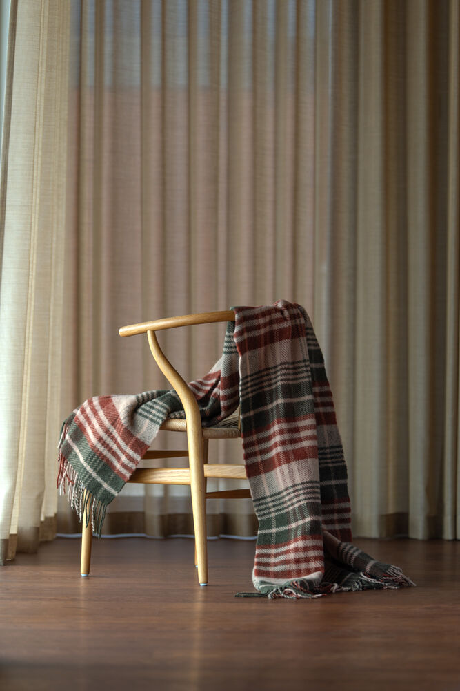 Mykt og varmt pledd i 100% ull. Den har et klassisk og robust design med dekorative frynser som tilfører et snev av eleganse til ethvert rom i hjemmet. Bruk som pynt i sengen eller som en koselig detalj i lenestolen eller sofaen.
