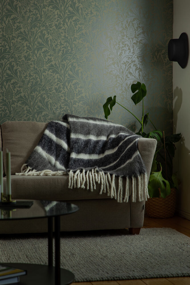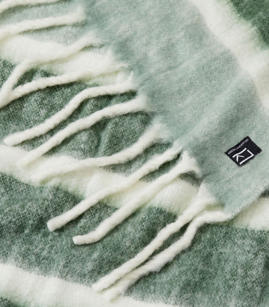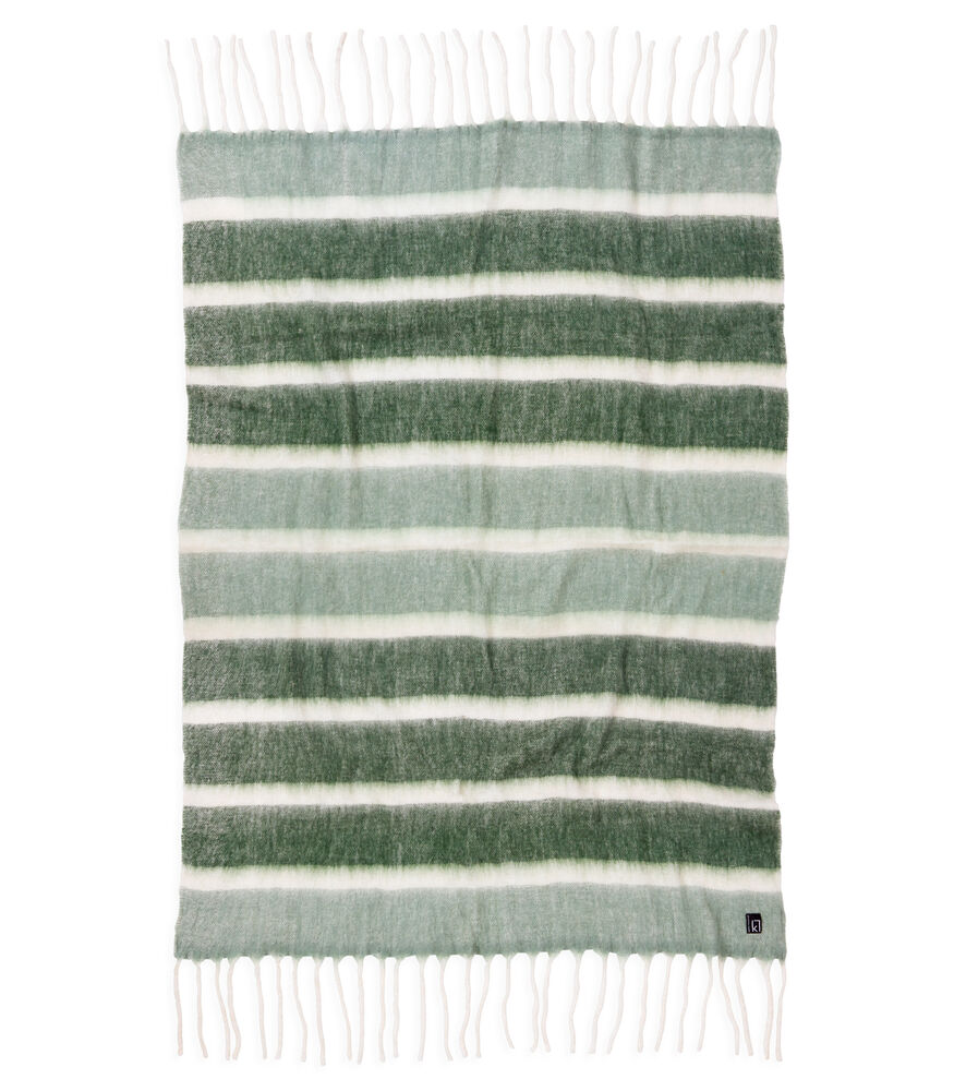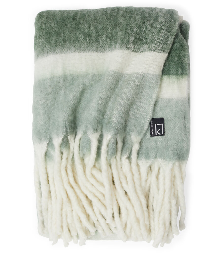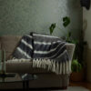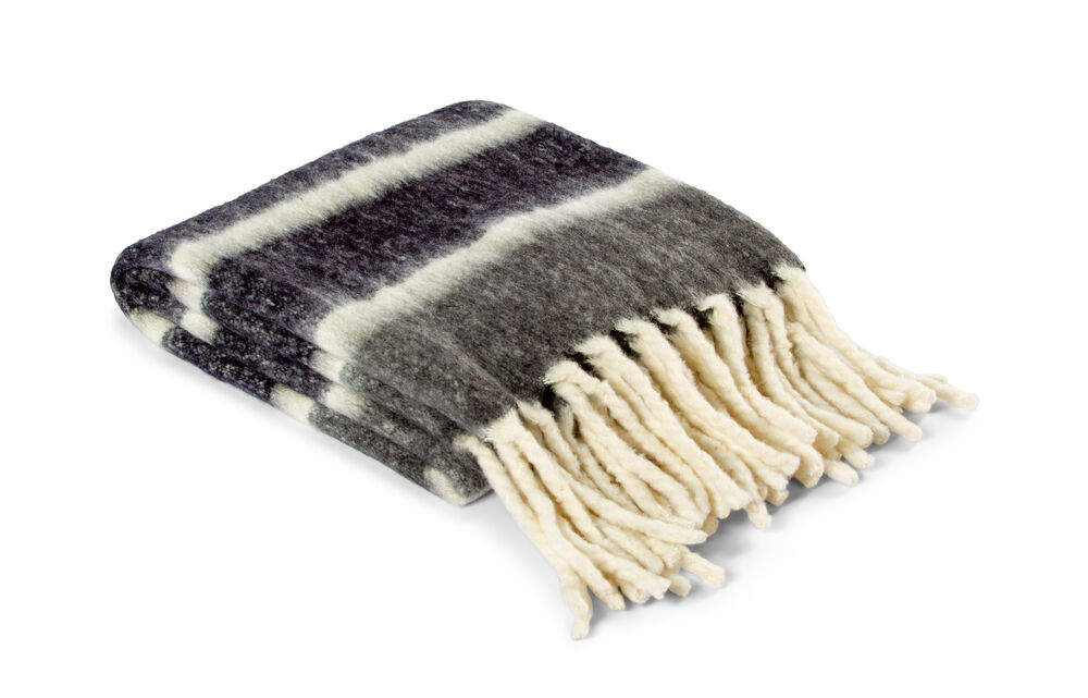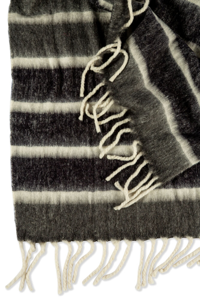 Dette stripete, håndvevde pleddet er både koselig og stilig! Laget av høykvalitets ull og akryl, og med store, tykke frynser som gir en ekstra touch av eleganse. Perfekt for å krølle seg sammen på en kald vinterkveld. Fin å kombinere med Ullpledd 410776