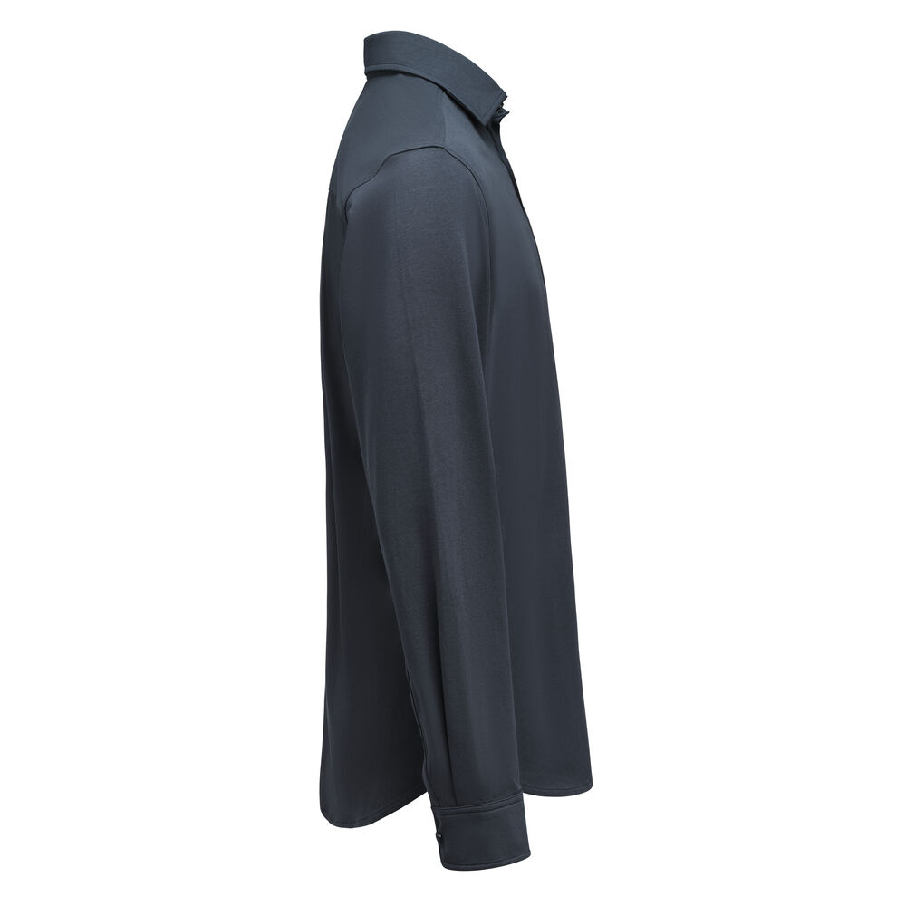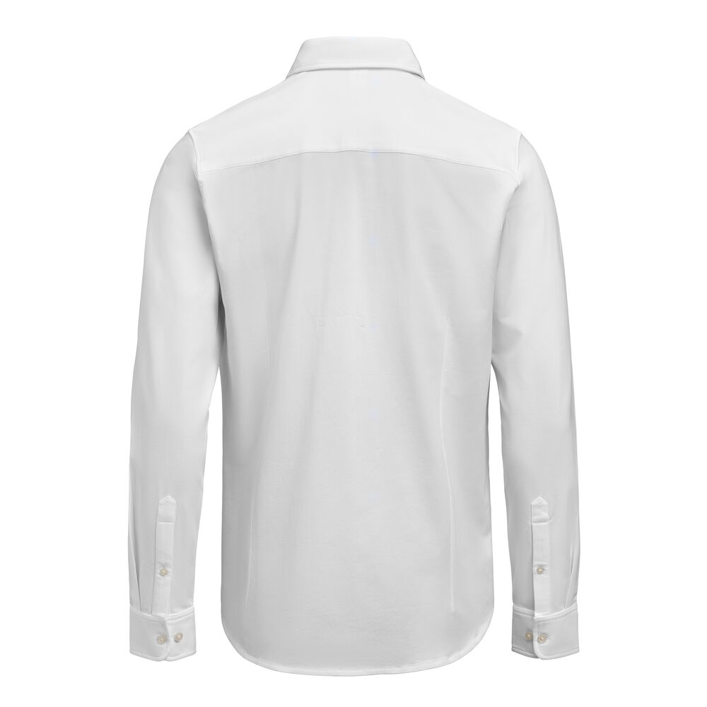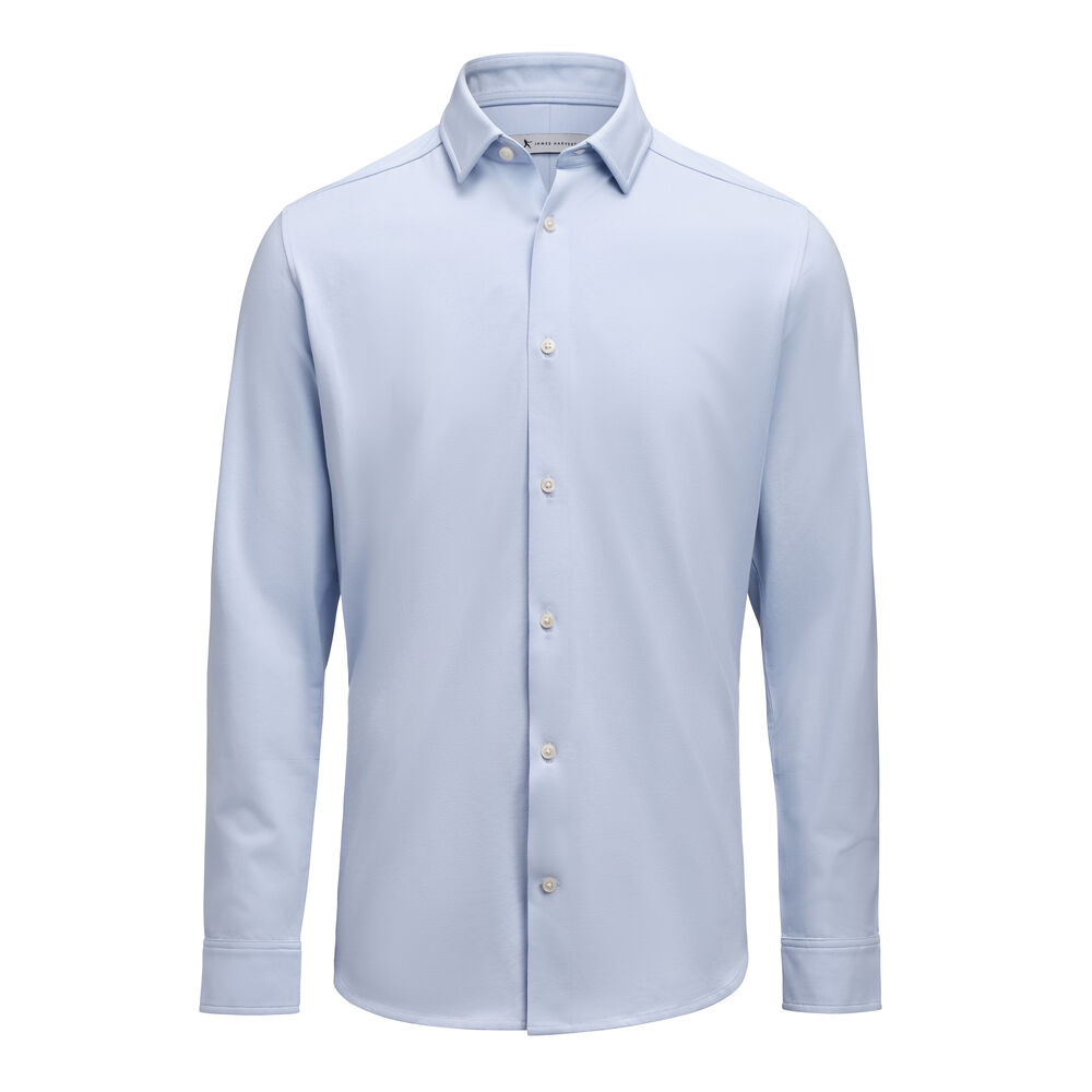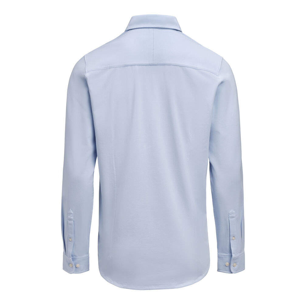 Denne strikkede single jersey-skjorten er laget av et lett stoff. På grunn av blandingen av økologisk bomull og elastan, har skjorten mye stretch, noe som gjør den svært behagelig å ha på. Skjorten har en skjult krage med knapper som gir et stilrent utseende. Kombiner Upton-skjorten med en dress for en pyntet look, eller bruk den med våre jeans eller chino for en mer uformell look. Tilgjengelig i Tailored Fit for menn og Contemporary Fit for kvinner.