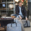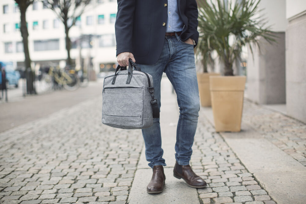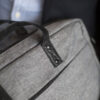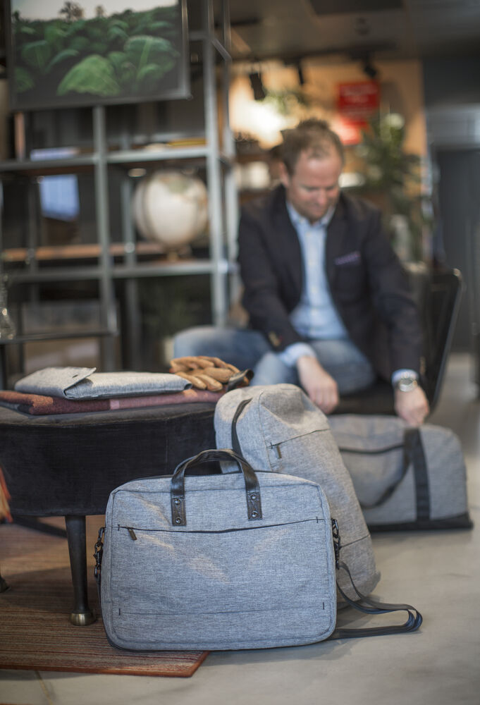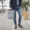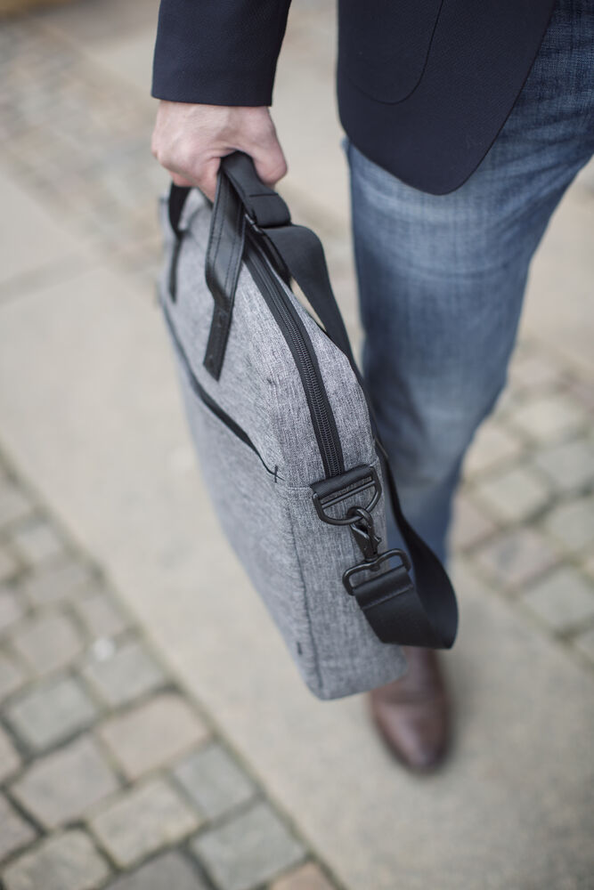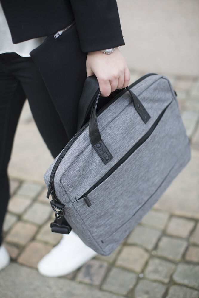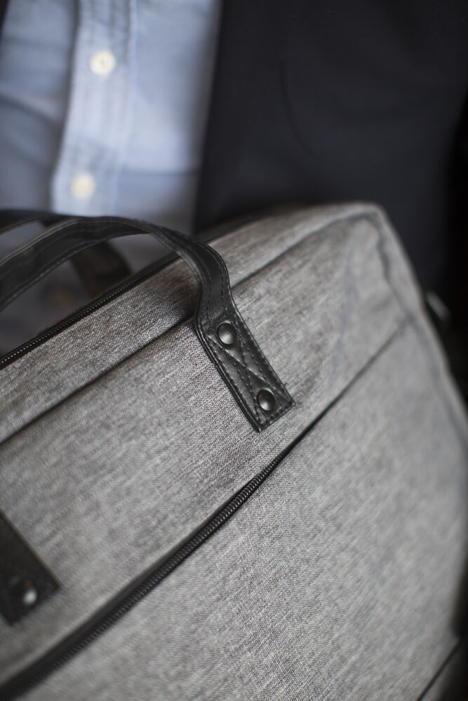 PC-veske med vattert lomme. Detaljer og håndtak i PU – lær.