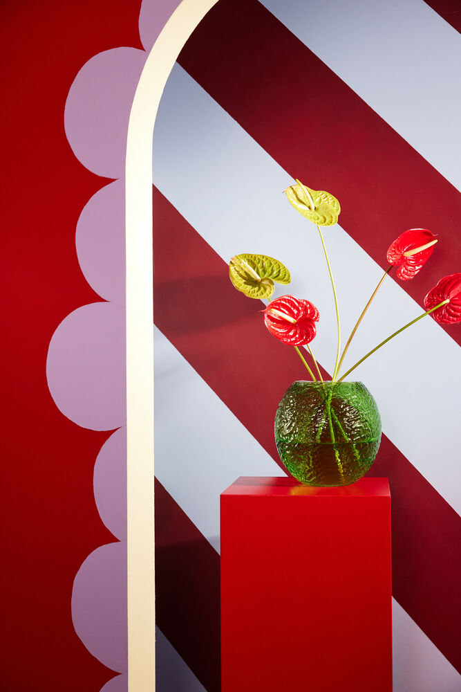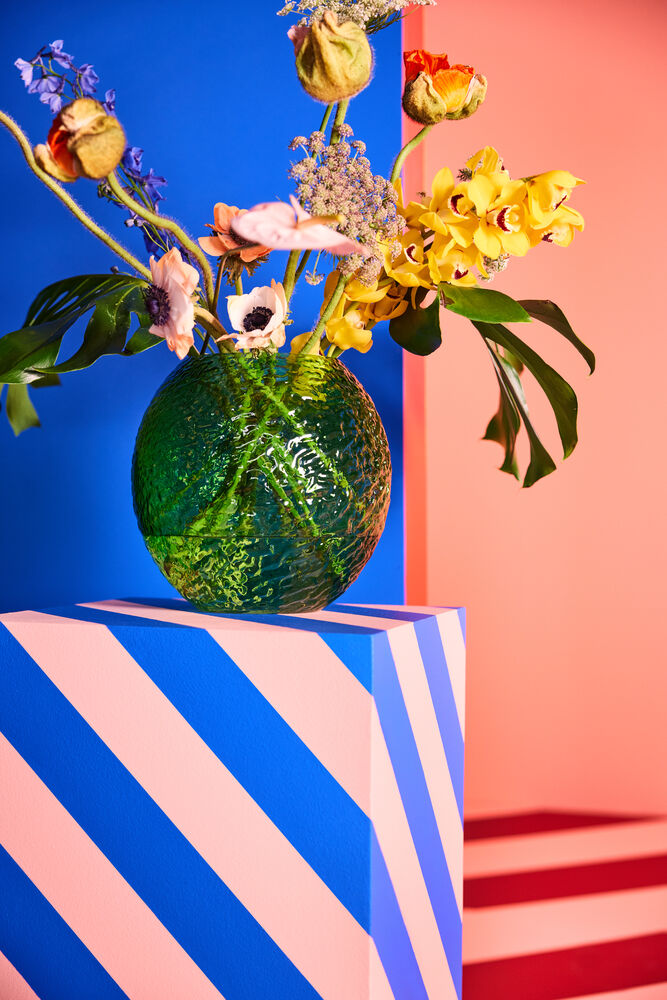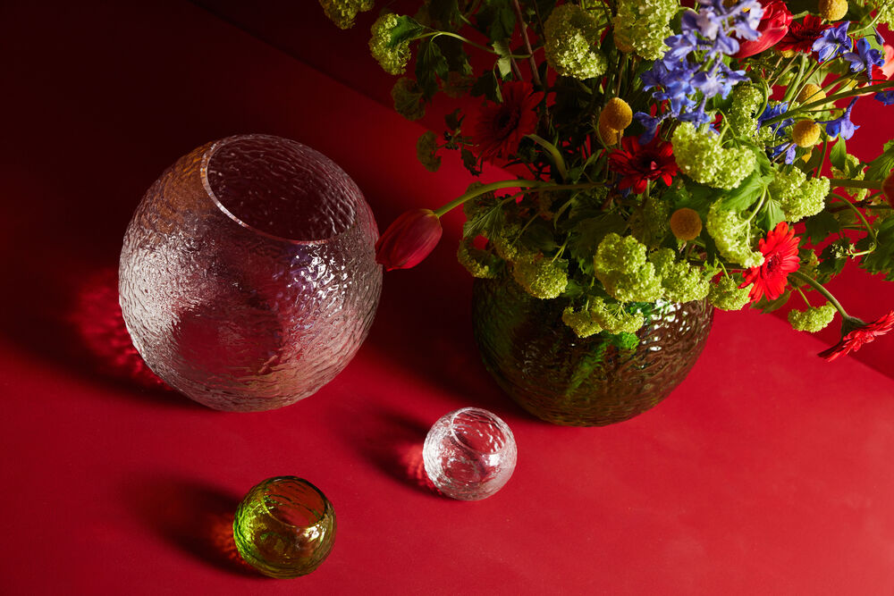 Som en stor grønn såpeboble med perfekt rund form og en vakkert strukturert overflate, viser Vase Babbly veien når man skal dekorere. En vase som er organisk og uavhengig, og tror på seg selv og dekorerer hjemmet ditt med en åpenbar dristig skjørhet. Nydelig med en stor bukett eller i all sin enkelhet. Laget av håndlaget og håndblåst glass.