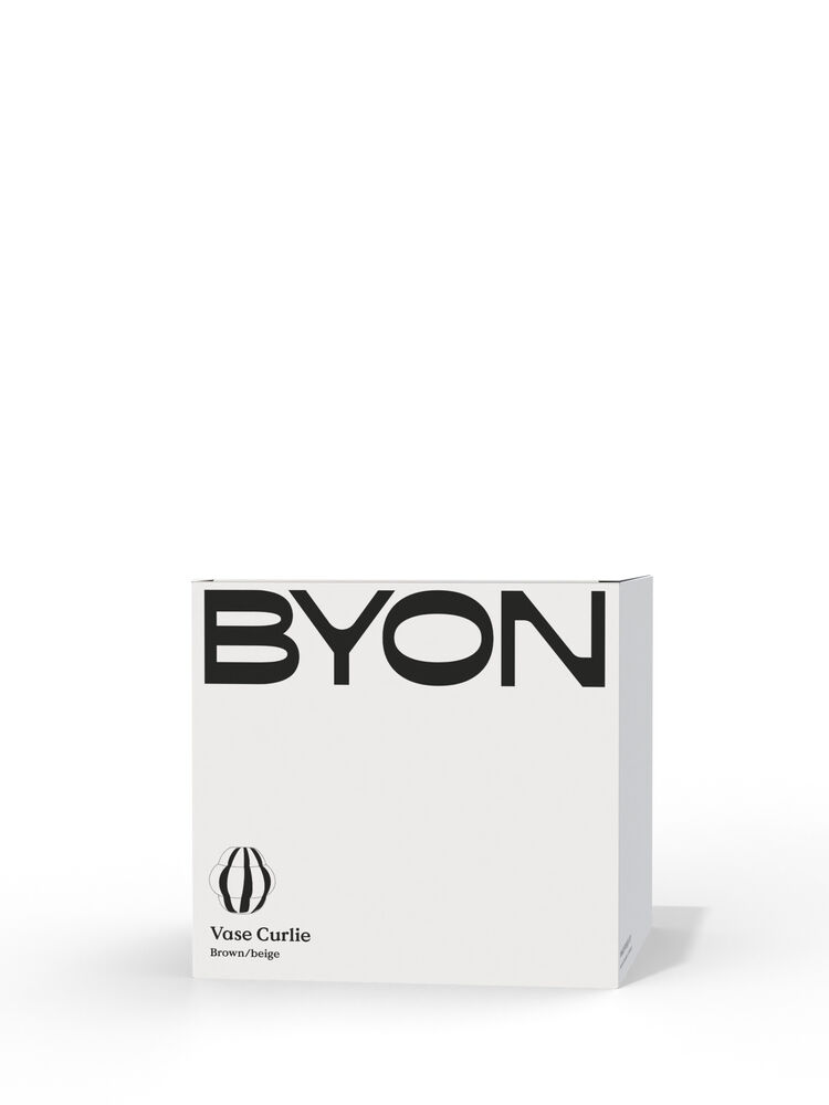Curlie er en vase med vakre striper og myke former. De håndmalte fargene i deilig brun karamell gjør hver vase unik mens de runde volanger gjør vasen leken og enkel. Curlie er også tilgjengelig i gult.