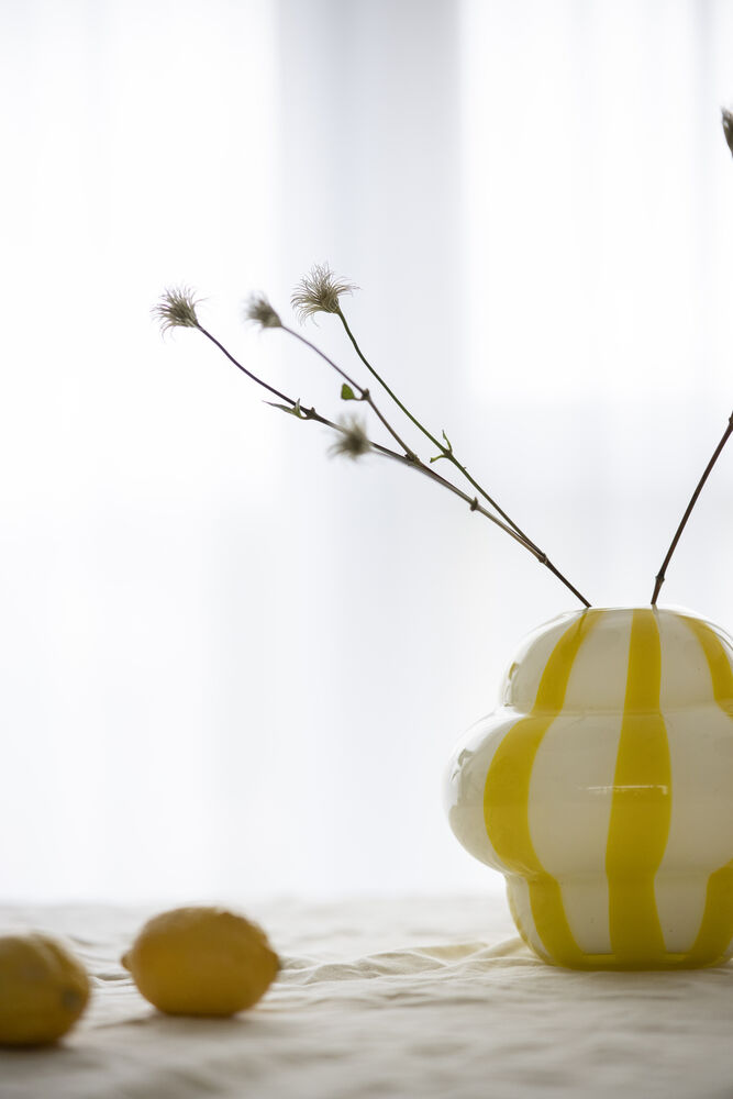 Glasskunst med vakre og myke former. Den håndmalte gulfargen gjør hver eneste vase unik.
