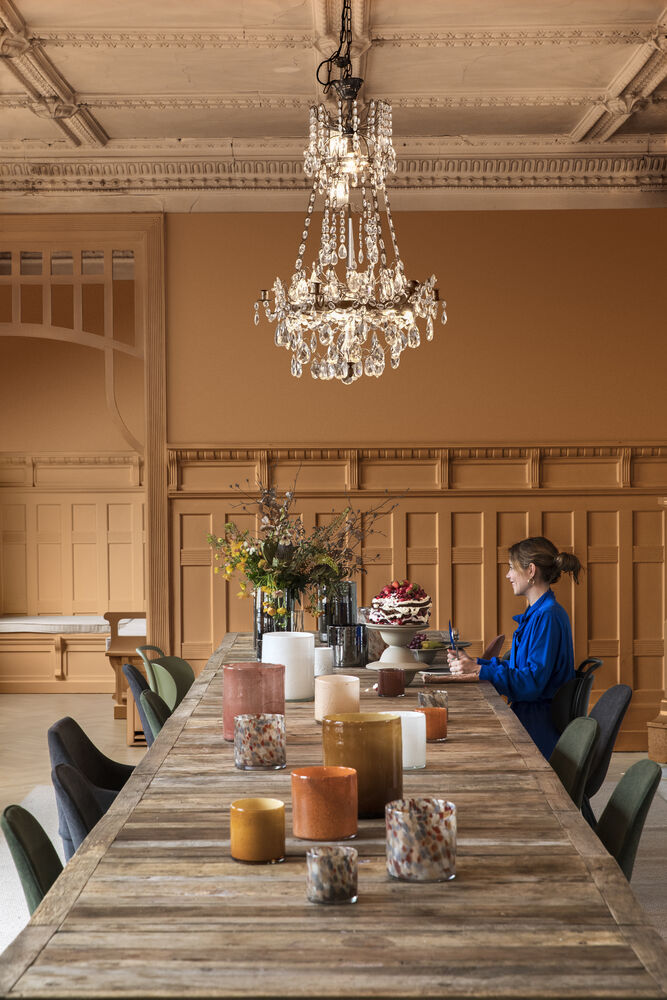 Calore vase/lyslykt medium i ferskenfarget glass.