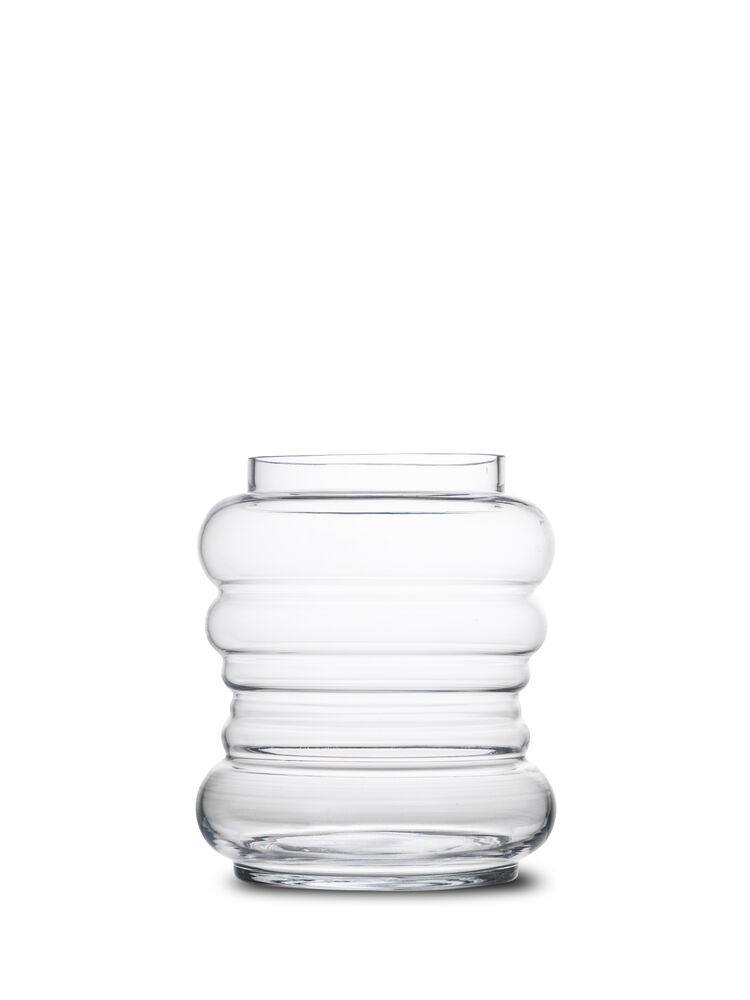 En vase med myke former i klart glass.