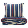 Klassisk stripete og marint sengesett med bakside i marine, vevd av behagelig og sval percale.