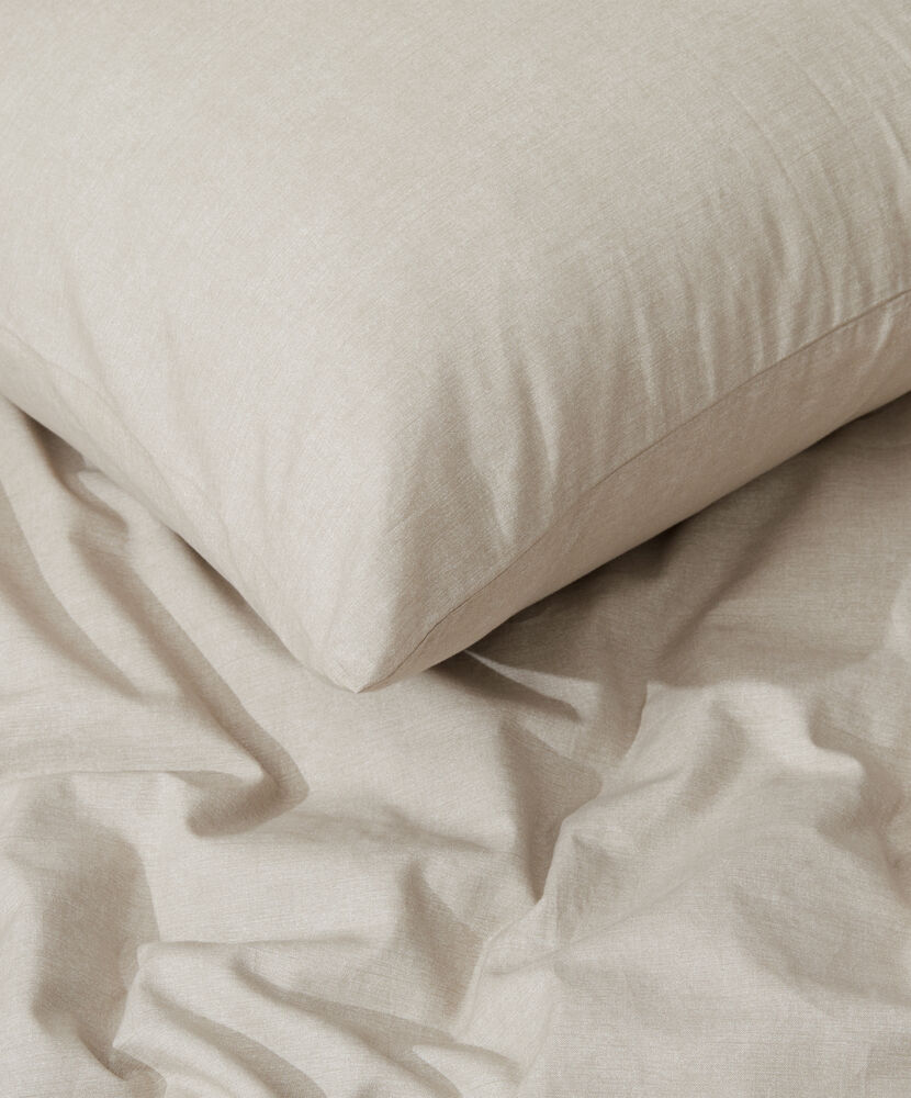 Elegant sengesett i sofistikert melangedesign i to farger. Velg mellom toner i matt beige eller mellomgrå.