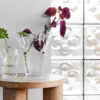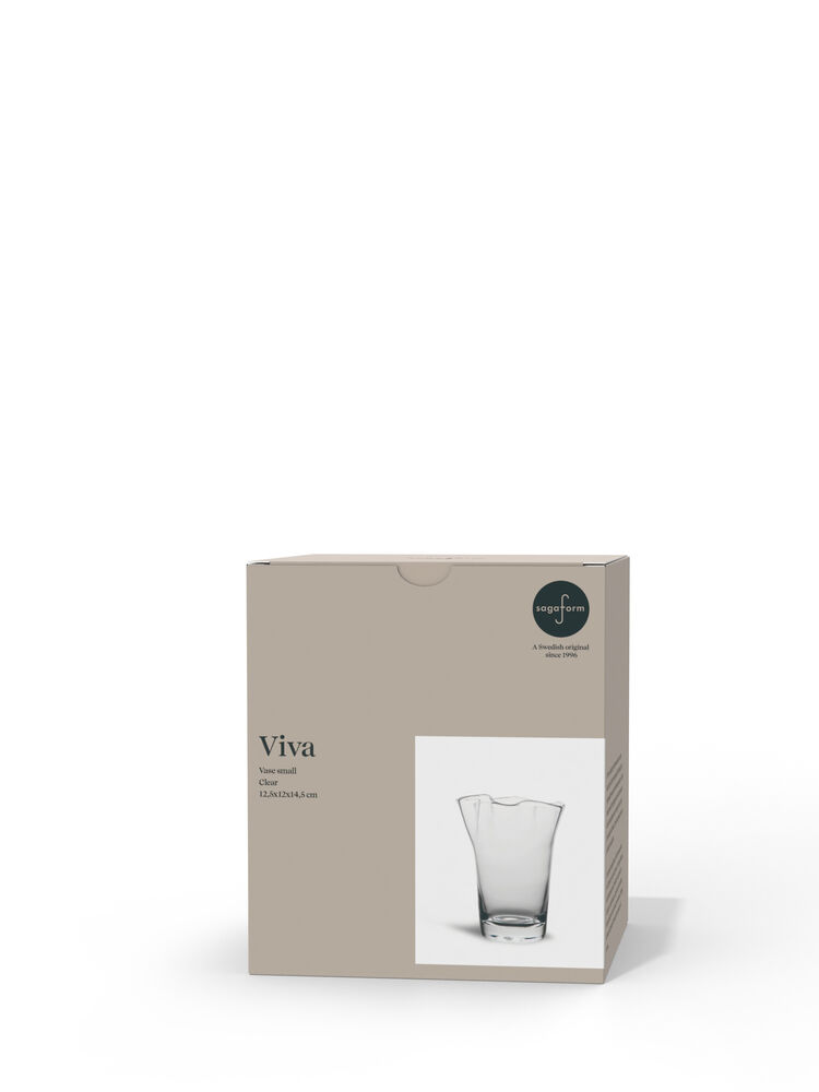 Som en nyutsprunget blomst folder Vasen Viva ut bladene og flørter med oss på en forførende måte. Viva finnes i to størrelser; en liten som er perfekt for stiklinger eller små buketter, og en stor som kan fungere som en statuett både med og uten grønne blader og blomster. En svensk original som har en åpenbar plass i alle typer hjem.