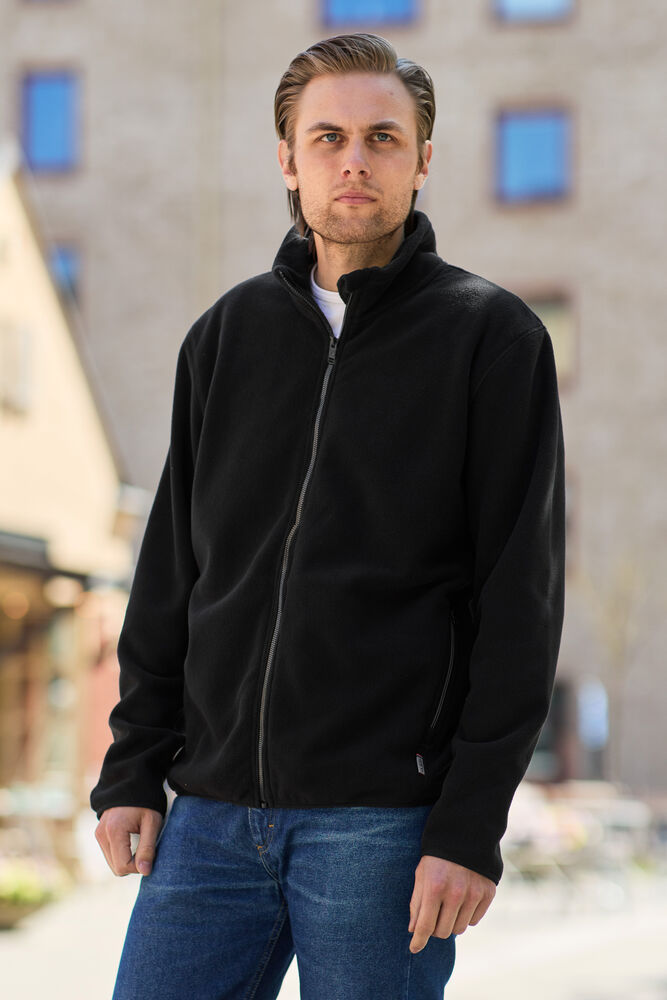 Fleksibel og myk genser i polarfleece. Produsert av sertifisert resirkulert polyester. Hel glidelås som går opp i kragen, samt frontlommer med dekorative, synlige YKK-glidelåser. Dobbelkrage med formtilpasset design. Fremflyttede side- og ermesømmer sørger for god passform. Dekorative flatlock-sømmer, samt strikk i nederkant og på ermeavslutningene, alt i samme fargetone.