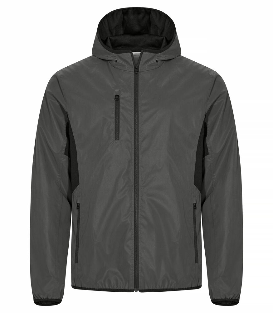 Reflekterende vindjakke med hette. Bird Eye-fôr i hetten og armhulene gir økt komfort og pusteevne. Tre utvendige lommer med glidelås og to innerlommer. Kontrastfarget teip rundt hette, nederkant og ermeavslutning.